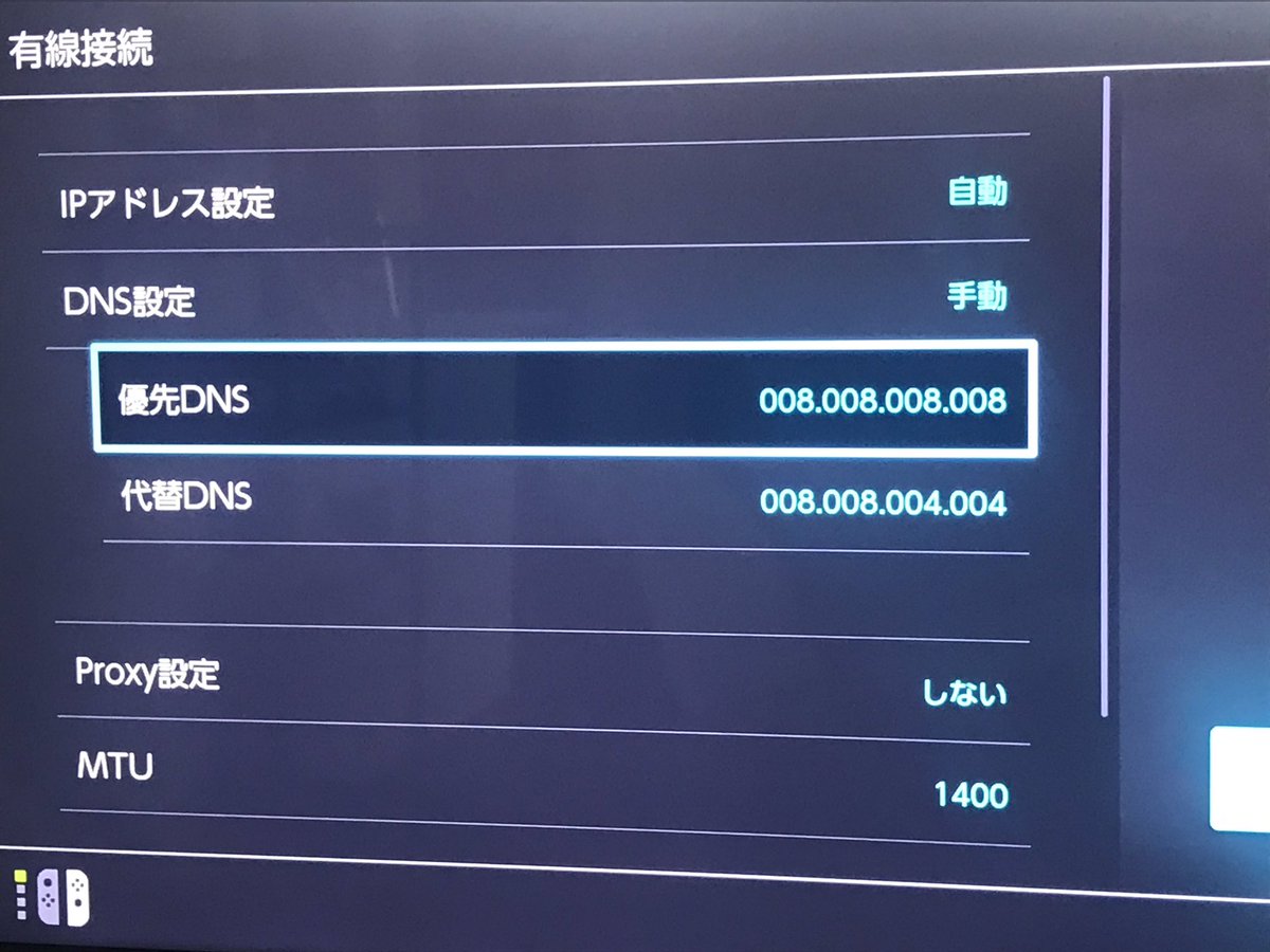 DNSは契約プロバイダー指定から、8.8.8.8に変更