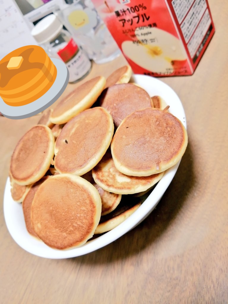 低カロリー材料のパンケーキかと思ったらむしろバター入ってカロリー増してるひとくちサイズホットケーキだったわらう