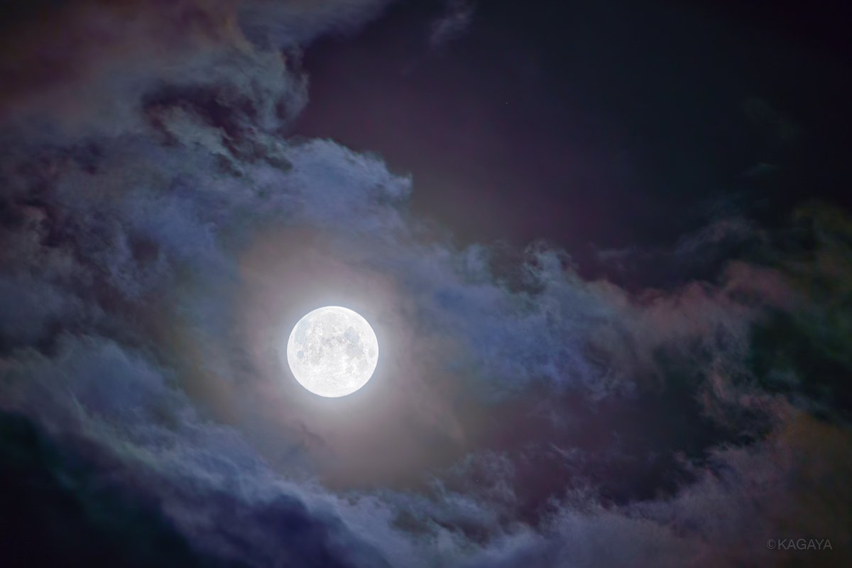 今朝未明の十五夜満月です。 月のまわりの雲が色づき、なんとも神々しい光景でした。(東京にて撮影) 今日もお疲れさまでした。明日も…