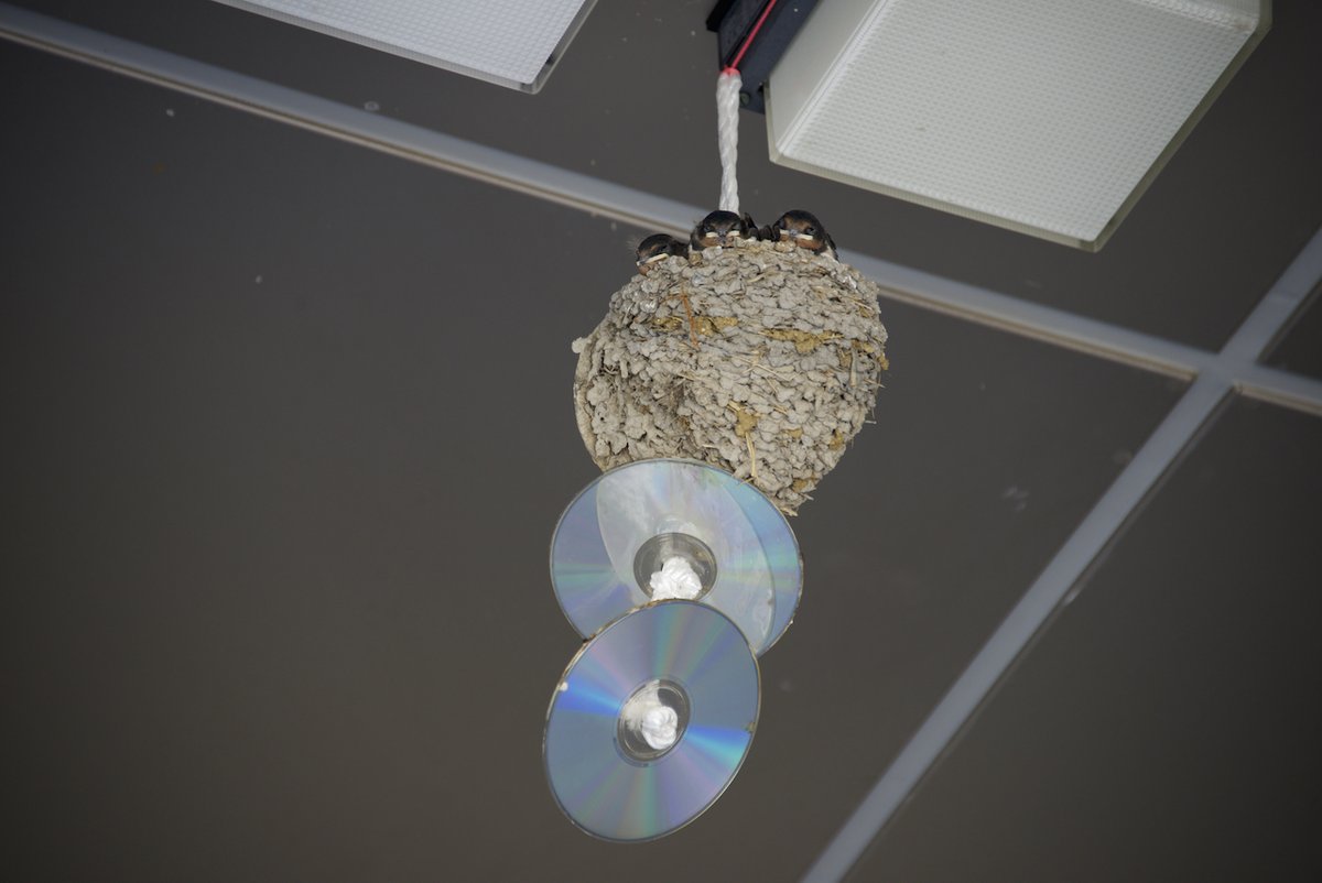 カラス避けにCDを吊るしてあるのを見ると「カラスって光るモノ好きなんじゃないの?」と思ってしまう私ですが、ツバメもCD好きで可愛い (´・∀・)