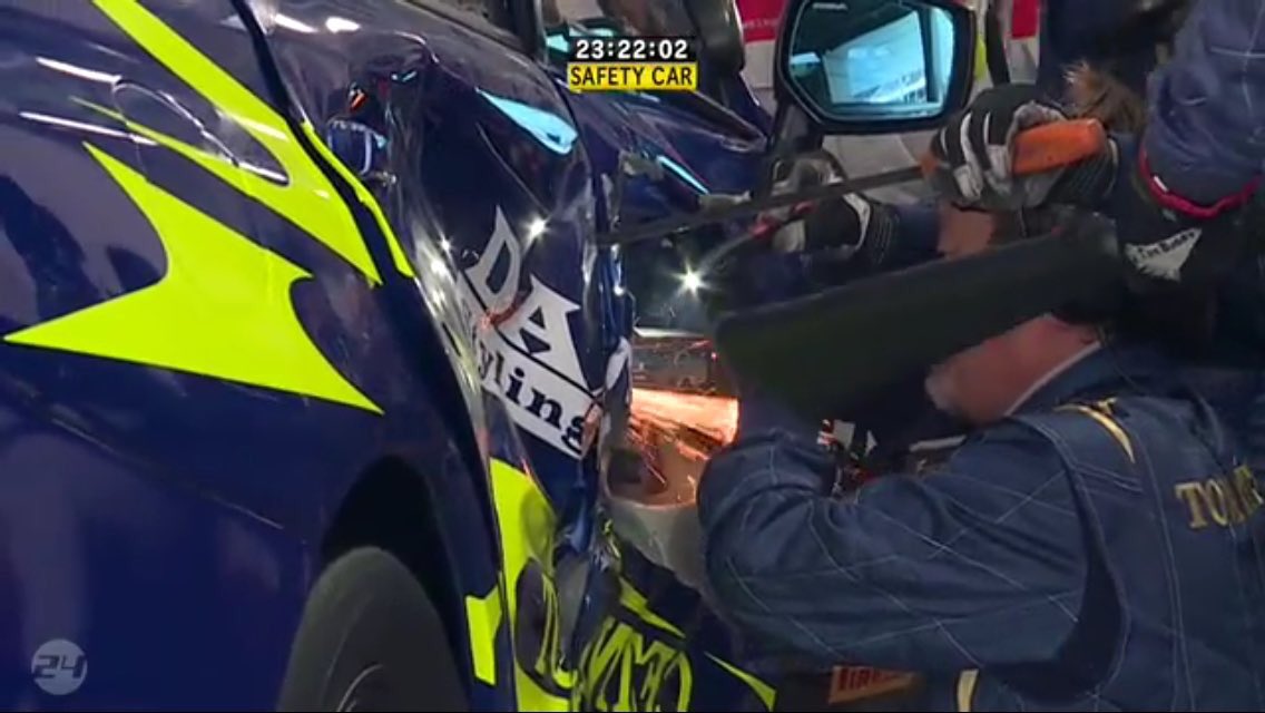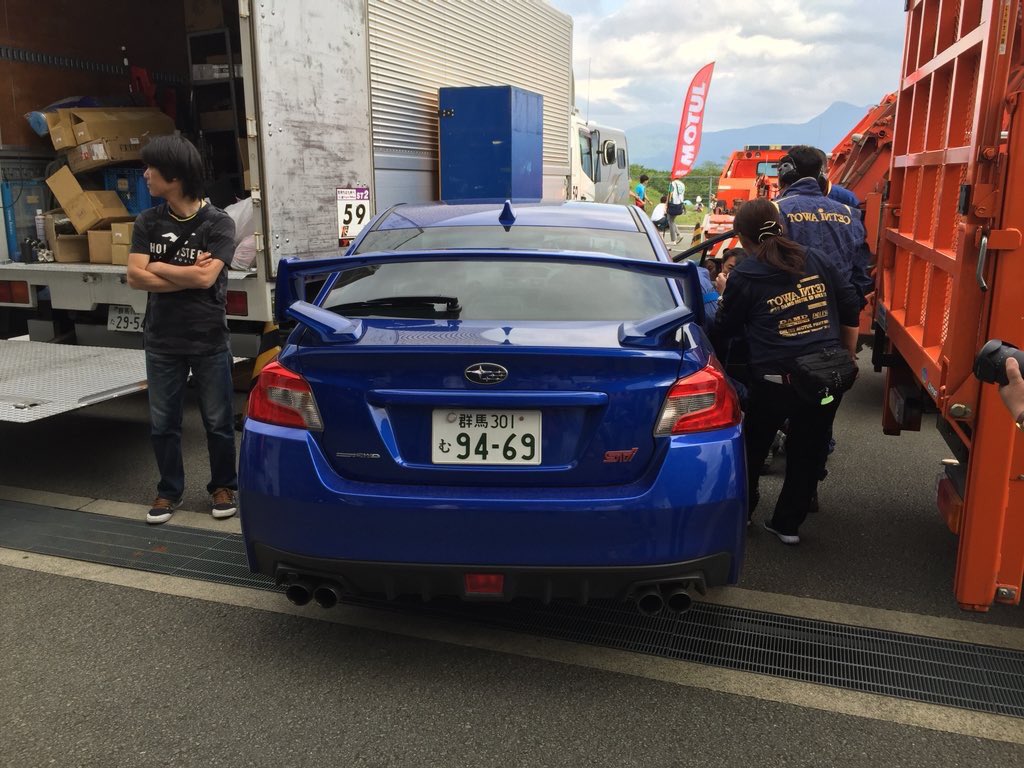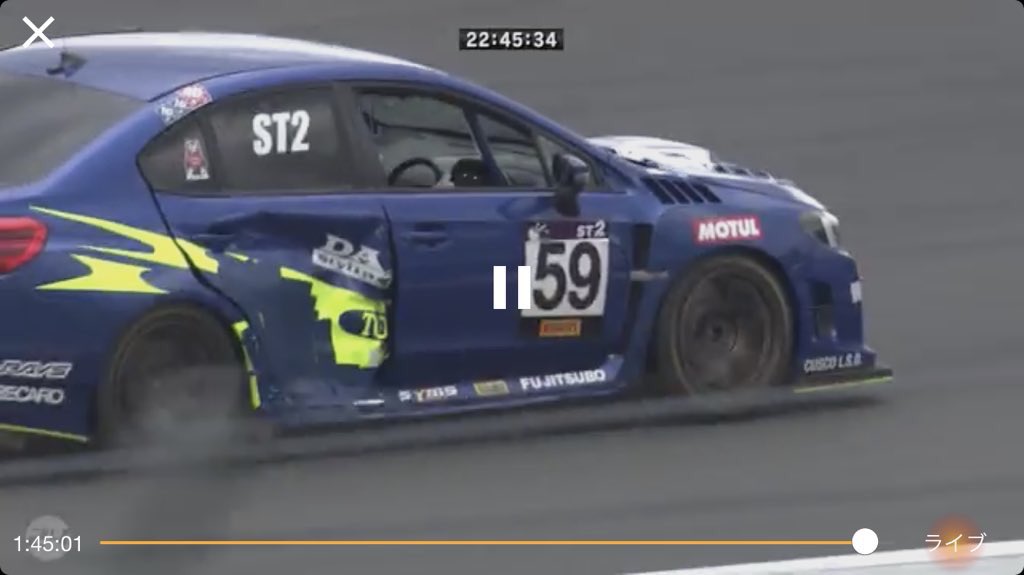 今日の富士の24時間耐久レース、WRX開幕早々アウディに追突されドライバー交代すらできないほど凹んでもう諦めモード