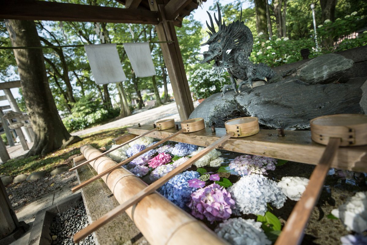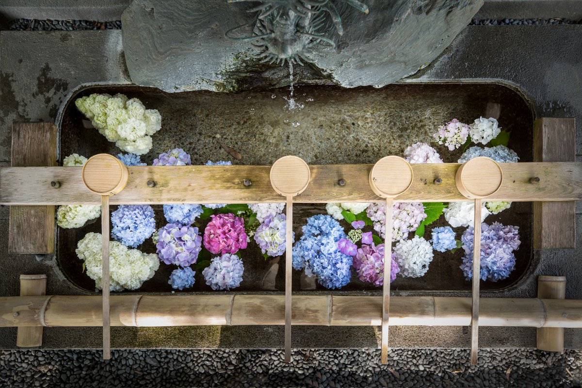 すごく涼しげな光景ですが、アジサイには毒性があるのでここの手水を使って口を漱ぐときは少し注意が必要かもですね。葉や花を直接口にしない限りは大丈夫とは思いますが^^;