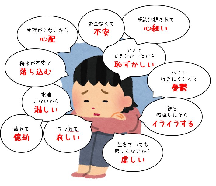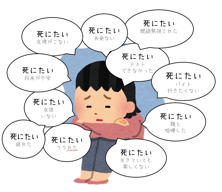 この細やかな感情を理解しつつ、それが高まって『友達がいない』から『寂しい』ゆえに『私なんていなくても世界は回る』→『死にたい』に繋がるんだけどどうしたらいいんだよ!全て連結してて『死にたい』が感情化してるんだよ!