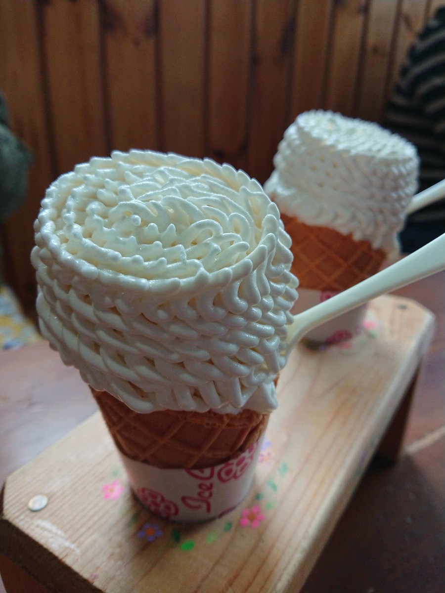 ソフトクリームの替玉( ̄□ ̄;)!!まじ⁉しかも麺類のようなクリームの巻き方?でも味噌ラーメン味とか醤油ラーメン味なんて出てきたらやだなぁ(´・ω・`)