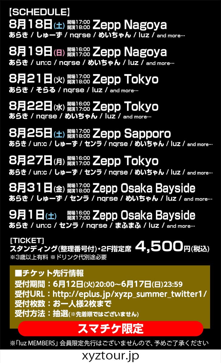XYZ TOUR 2018 -SUMMER- あらき un:c しゅーず センラ そらる nqrse まふまふ めいちゃん lu…