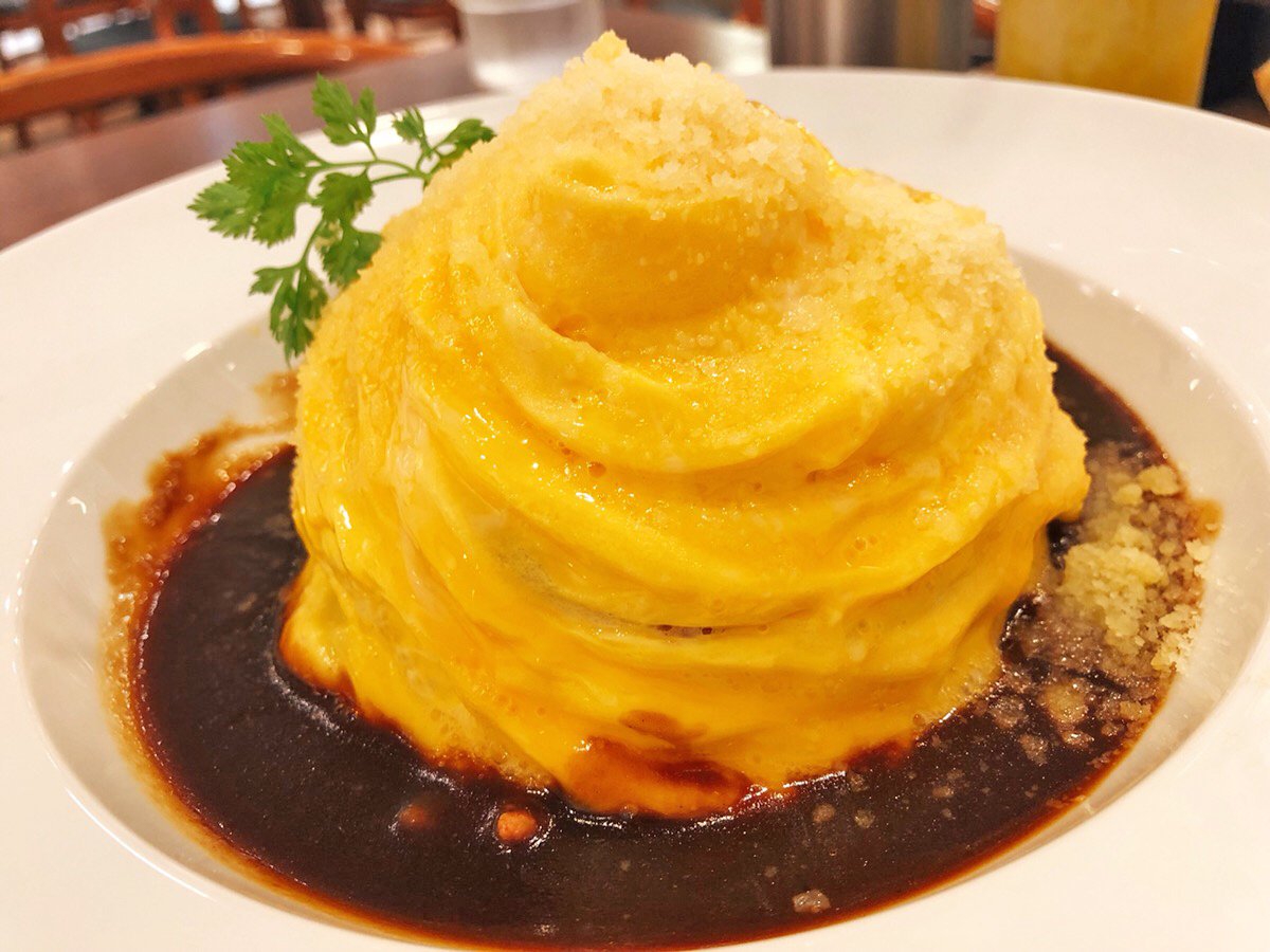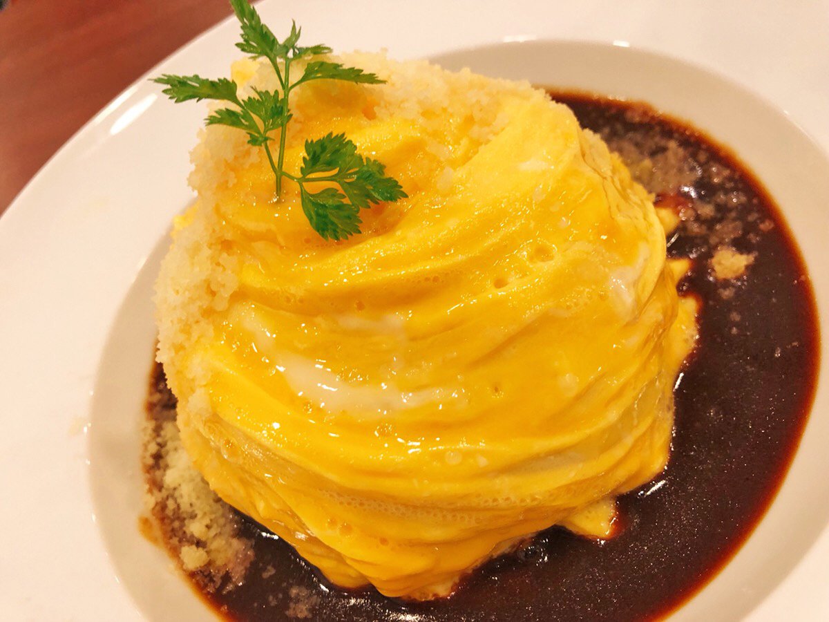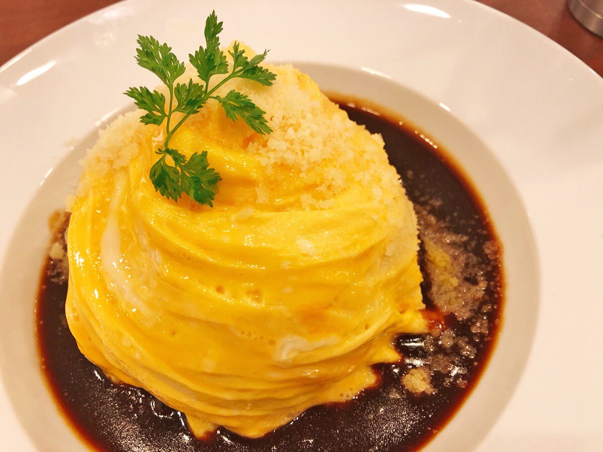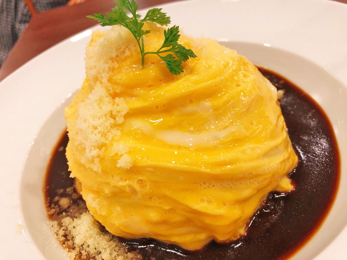 ドレス上に巻かれたふわふわオムライスを食べられるお店。
