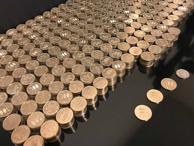 100円玉くんも、こんな大勢の500円玉くんに囲まれて、さぞ落ち着かなかったでしょう。