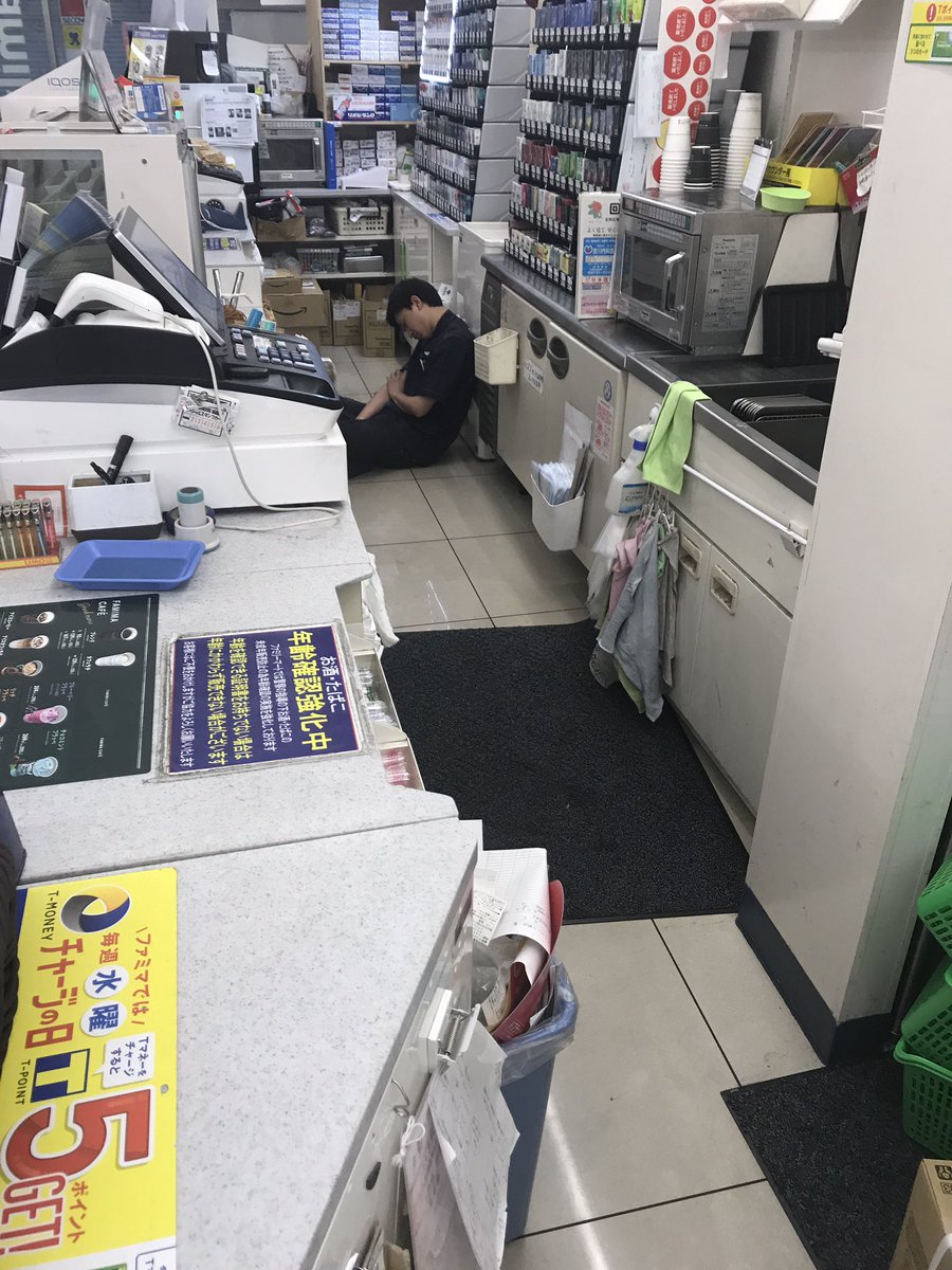 もしコンビニでレジ休止中って看板出てようが起こしてみて起きなかったら救急車呼んであげてね……。夜明けくらいにこうなってると倒れてる可能性もあるんだ…私の働いてた所で本当に疲労で倒れてるってあったから…