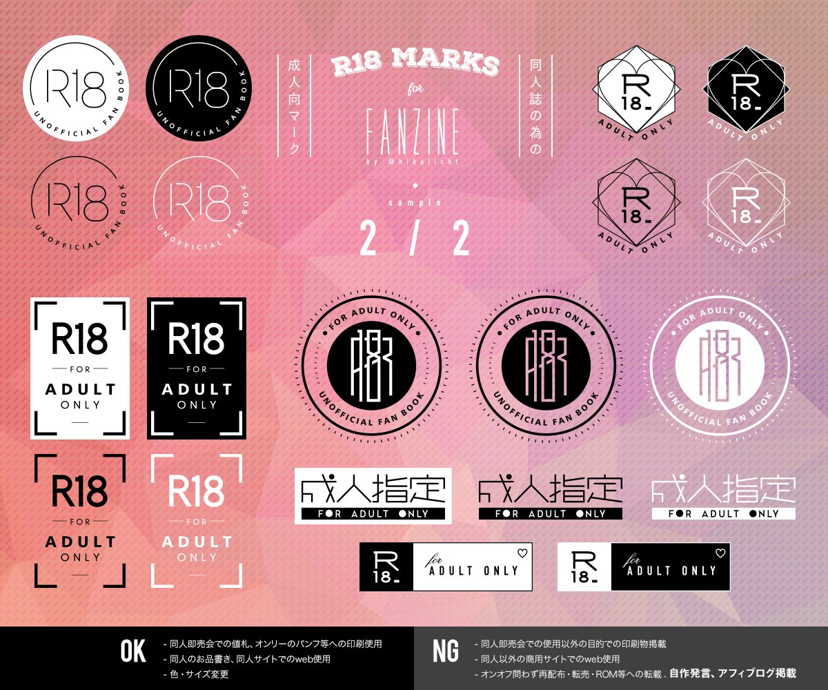 同人誌の表紙用のR18マーク投稿したよ。ご使用の際はピクシブで原寸表示の透過してる画像を使ってください。