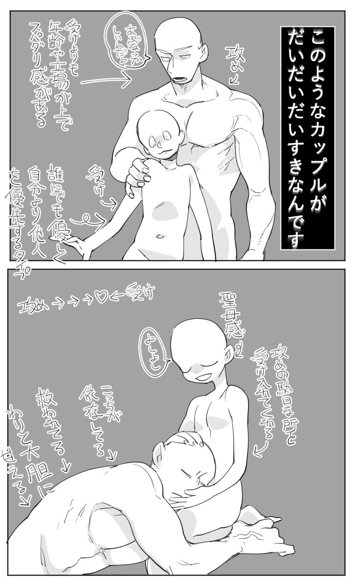 語彙力が無いのでかきなぐってみましたが男女でも男同士でもこのようなカップルが大好物です。伝わってくれよお!!!!!!!!
