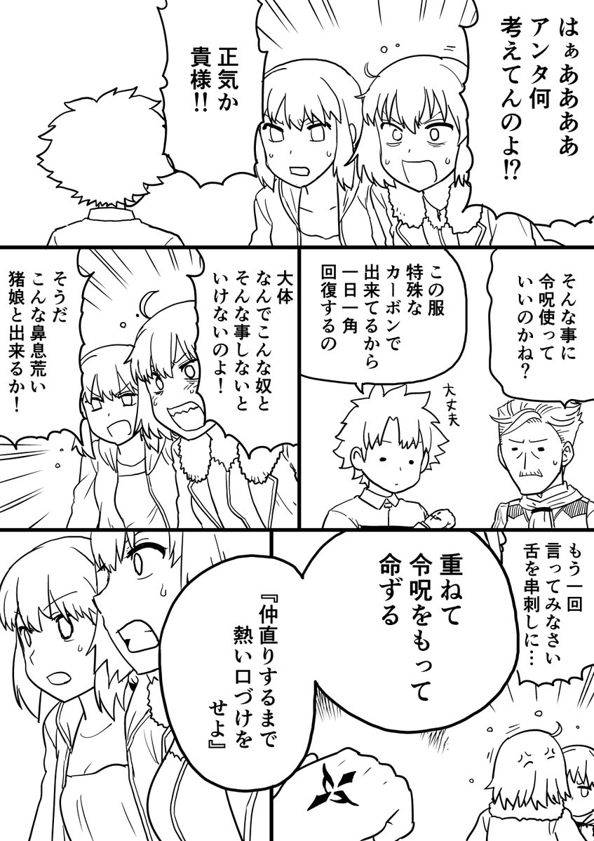 本当にね、目くじら立てても仕方ないのは重々承知だけど、FGO2次創作の令呪の使い方は毎度もやもやする。1画で複数鯖に命令したり、効果がやたら継続したりね・・・・・・