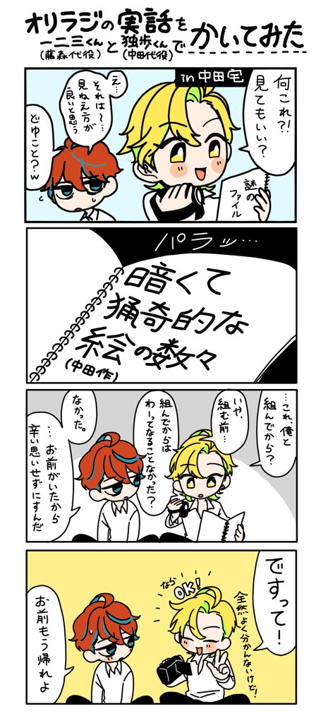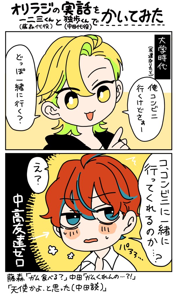 2018.07.22 ツイート maru藤森慎吾が作詞したヒプマイ一二三くんが人気ですね…!というわけで、オリラジオタクが「本当にあったオリラジエピソード」をシンジュク… サラダ団子(だんし)@sarabaSARADA藤森慎吾が作詞したヒプマイ一二三くんが人気ですね…!というわけで、オリラジオタクが「本当にあったオリラジエピソード」をシンジュク幼馴染で描いてみた。 14:59 – 2018年07月22日返信リツイートお気に入り