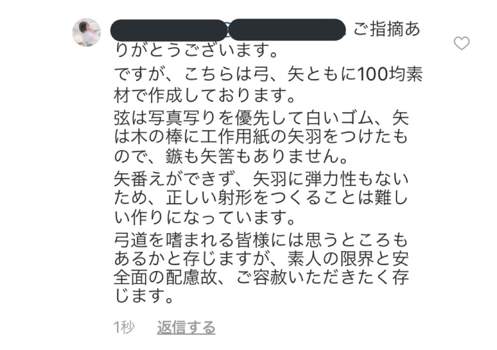 弓道やってる身としては言う人の気持ちもわかるし、レイヤーさんの気持ちもわかるけど、なにより百均で作ったことにしか意識が行かない←