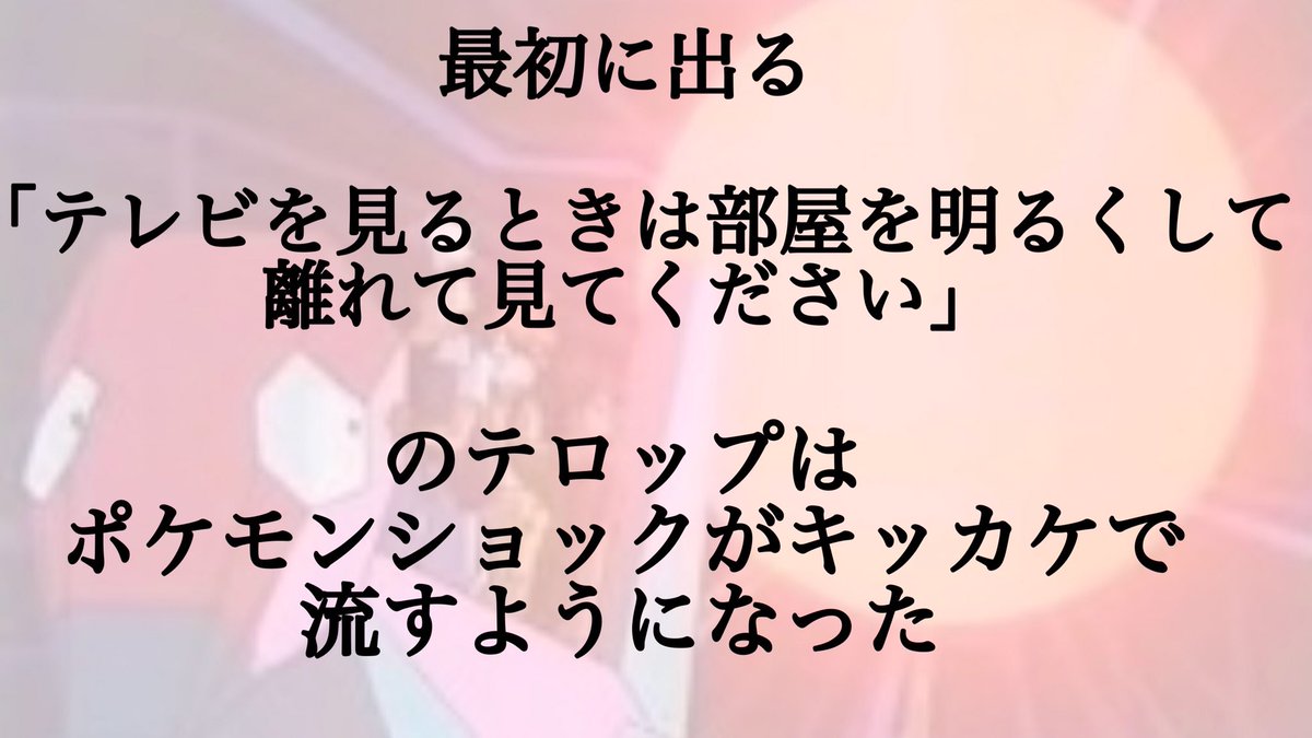 ポケモンショックもテレビに近付いて観るようになっていた家庭の悪習(まぁ俺もやっていたが)で、ポケモンが当時すごい人気というたまたまが重なったことで他のアニメでも普通だった手法。