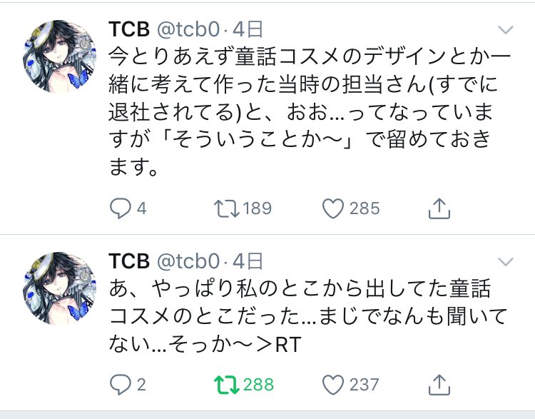 童話コスメの初音ミクちゃんすごくバズってるけど、TCB先生のファンの1人としては、あのイラストが生まれて童話コスメが作られたわけで…