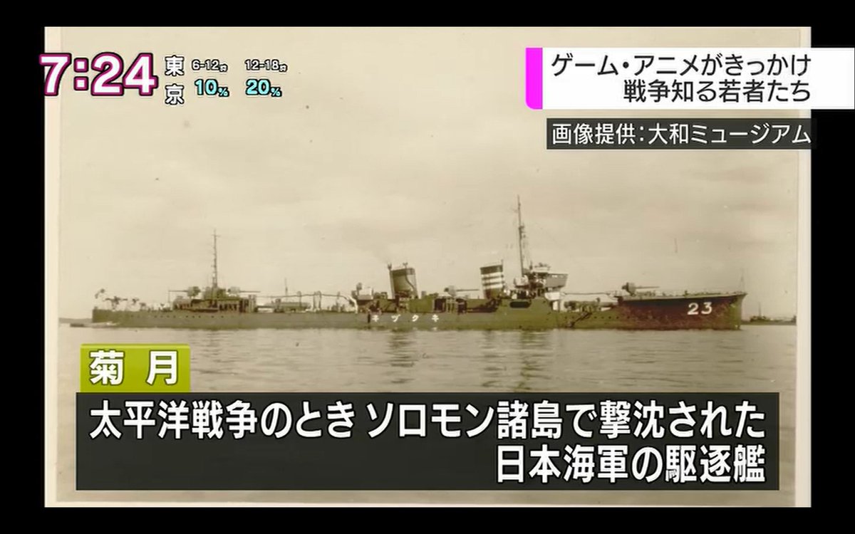 艦これのキャラクター「菊月」が好きになって、駆逐艦「菊月」を調べたら、着底したまま放置されているとわかりソロモン諸島へ。現地政府と交渉し、砲身をサルベージして日本で近日公開と。資金はクラウドファンディングで調達って、行くところまで行った感。すごいな。