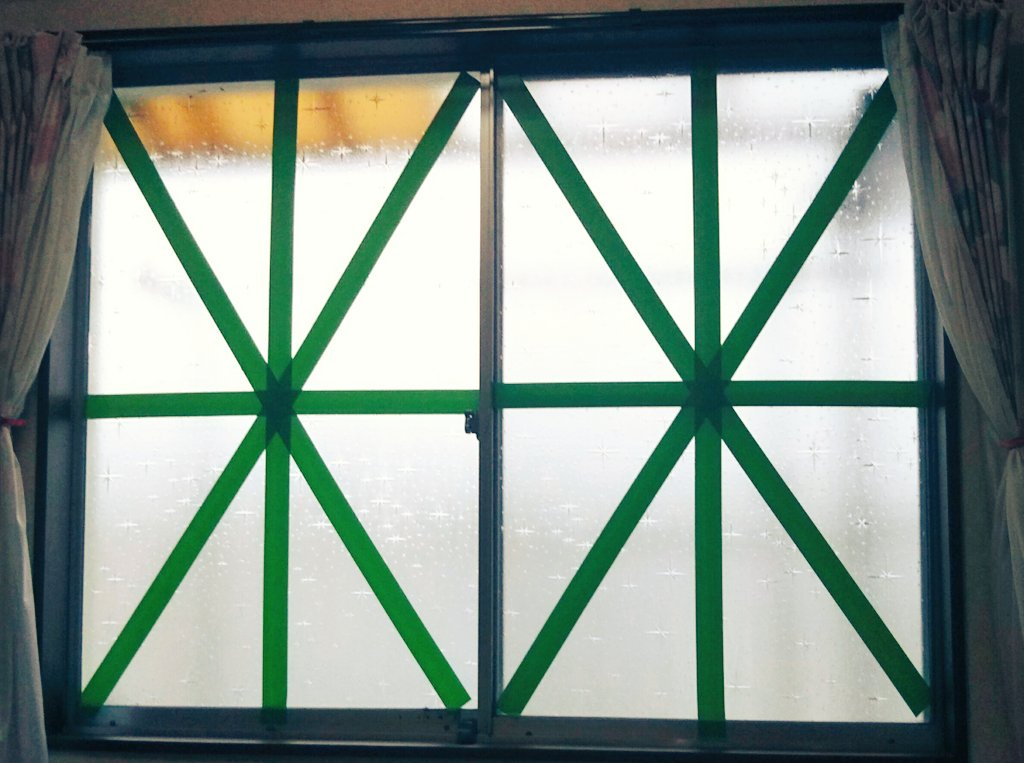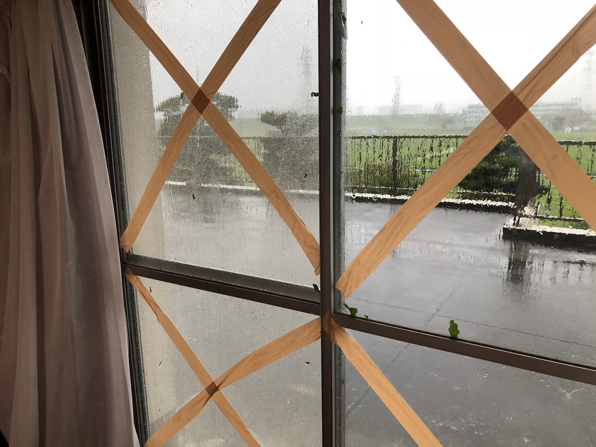 暴風域在住民はちゃんと養生テープorガムテで窓(特にベランダとかの大きい窓)補強しとくんだぞ