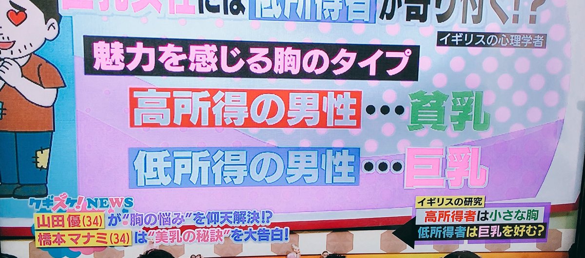 高所得者の男性は貧乳、低所得の男性は巨乳を好む。おい。待てよ。聞いてねぇぞ。