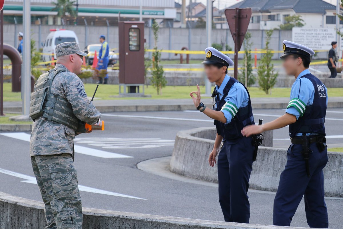ゲート外の警備に来ていた警視庁さんだろうけど、横田基地に遊びに来てた人たちの多くは受け取っても気にもしない(むしろ好意的)と思うけど、一部思想の方々がうるさいのと、大臣などのSPに仕事中に飲み物をすすめるとNo Thanksだったので、日本の警察的にNGなのかなー、と。