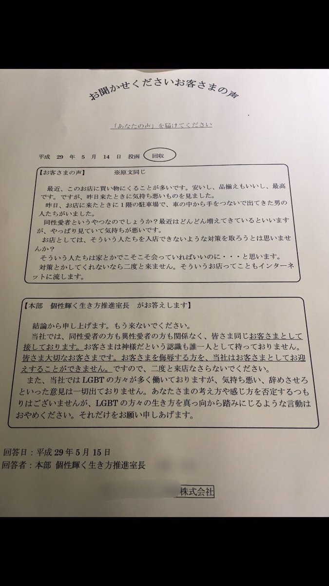 これ昨年Twitterで見かけた「お客様の声」に対する店側の回答なんだけど、本当にパーフェクトなのでみんな読んで欲しい。