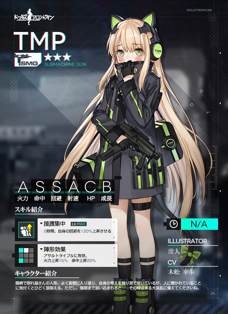 今日ご紹介するのは☆3レアリティでサブマシンガンの「TMP」です!