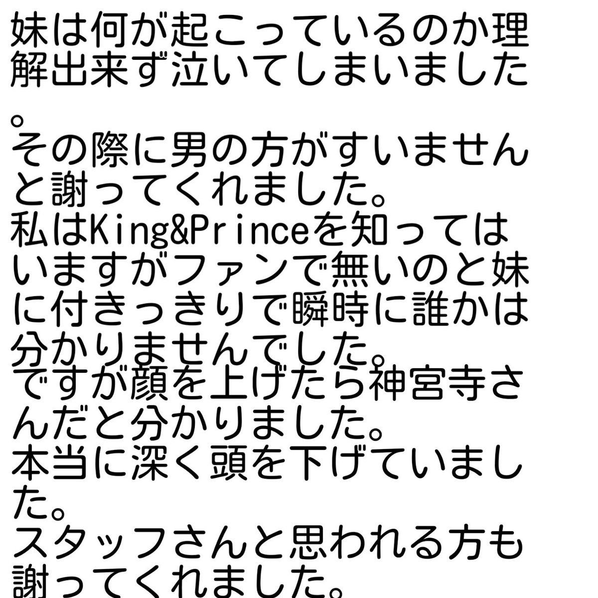 そしてスタッフと思われる方ありがとうございました。届かないと思いますが感謝しています。 #キンプリ#拡散希望