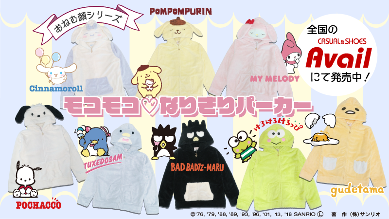 全国のアベイルでサンリオキャラになりきれるパーカーが発売!今年はマイメロディ・シナモン・プリンに加え、多くのキャラが仲間入り♪思わず抱きしめたくなっちゃうモコモコ素材!店頭でチェック☆ https://t.co/PP9OZ6PdtK