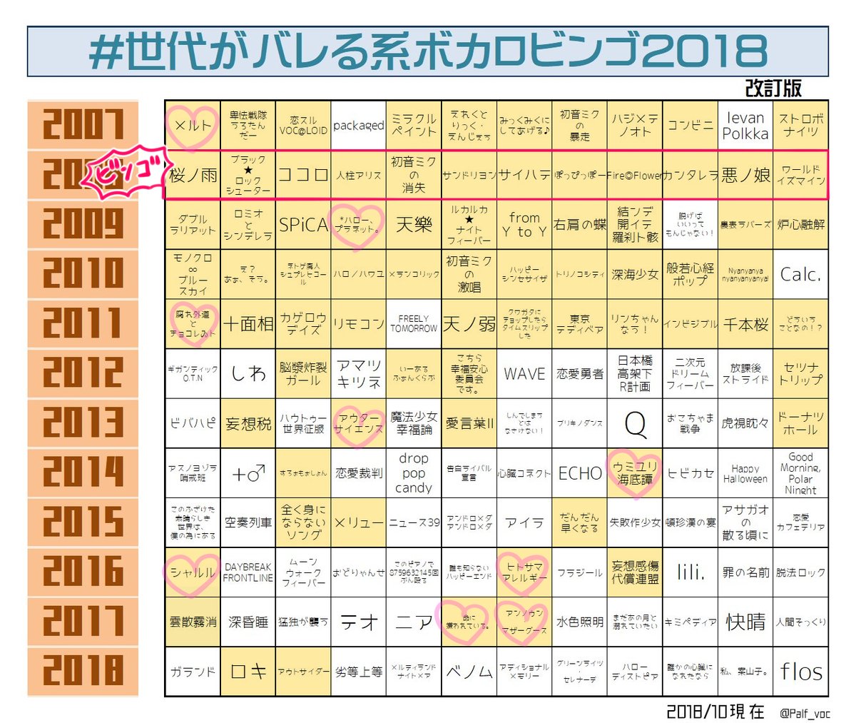 #世代がバレる系ボカロビンゴ2018 改訂版です。