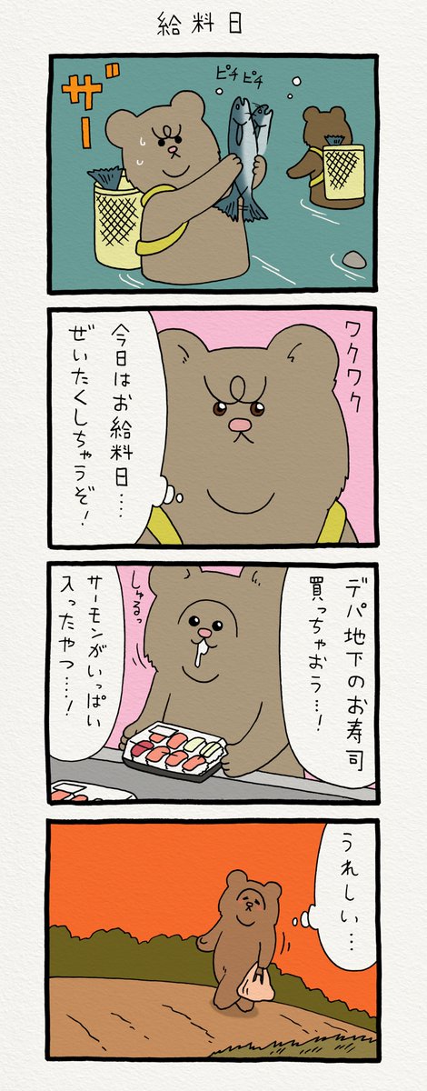 8コマ漫画 悲熊「給料日」https://t.co/GHMq3DCCOx 悲熊スタンプ発売中!→https://t.co/Nxou9iIzHZ