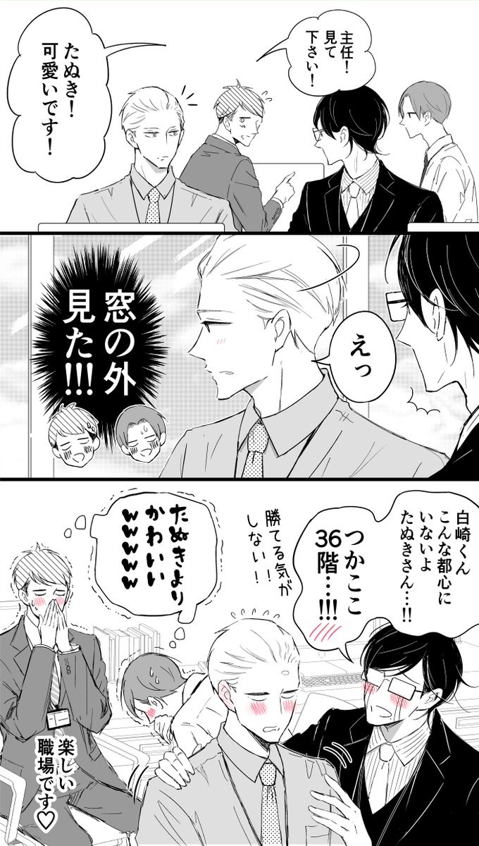 2018.10.28 ツイート maru【創作漫画】新しい上司はど天然 ⑤ いちかわ暖@本日18時@ichikawadan【創作漫画】新しい上司はど天然 ⑤ 18:00 – 2018年10月28日返信リツイートお気に入り ツイートに対するネットの反応あまね@amanenn_0123尊い18:54 – 2018年10月28日返信リツイートお気に入り海咲 ドリーミングは良いぞ@misak0423クールドジ愛しすぎる……18:53 – 2018年10月28日返信リツイートお気に入り静岡W会員TERU@tensinowankoほっこり面白いです♪18:53 – 2018年10月28日返信リツイートお気に入りきむら(よしかわ)さん@yrys7592あー、癒やし。 あー、好き。18:49 – 2018年10月28日返信リツイートお気に入りtalt@10時スギタラ食ベナイルール☂@9n_mi癒し18:48 – 2018年10月28日返信リツイートお気に入りどんこ@donkomeuかんわいっ!!!!!ほんでこの会社の顔面偏差値高すぎやろ←18:47 – 2018年10月28日返信リツイートお気に入りみ け た ん(身喰い@rubbish_28※全員男である18:47 – 2018年10月28日返信リツイートお気に入りイッチャン@潮☆@itsuka__himajinこんな会社に転職したい……壁になりたい……机になりたい……18:46 – 2018年10月28日返信リツイートお気に入り ちゃんもも@mee____s2やんばあああめっちゃすこ❤️青山課長もなかなかいいな、、、18:45 – 2018年10月28日返信リツイートお気に入り鈴木はーな@hana_suzu_kiこのシリーズ好きすぎる…しかも男子同士で(*´д`*)ハァハァ18:44 – 2018年10月28日返信リツイートお気に入りましゅ@mashu_chocoいつも読んで癒されています… ありがとうございます…!!✨18:31 – 2018年10月28日返信リツイートお気に入りeight@プログラミング勉強中@luna_Keyはー。私の上司も白崎主任だったら毎日仕事行くの苦じゃないのに。18:24 – 2018年10月28日返信リツイートお気に入り亮。@ryo_hxx早く!早く書籍化をっ(;´Д`)ハァハァ そしてこんな上司をウチの職場にもっ!18:19 – 2018年10月28日返信リツイートお気に入りんこやん@nkoya_nこの作品は電車の中などといった公共の場で読んではいけない…顔が…顔が緩み倒す…18:18 – 2018年10月28日返信リツイートお気に入りSayu@momosakubeamaro好き…主任18:18 – 2018年10月28日返信リツイートお気に入り イマ太@tatatanekoneko電車の中で見てしまったので必死ににやけるのこらえてる…18:15 – 2018年10月28日返信リツイートお気に入りぱとちゃん@pato1210x11841どうか私をここに就職させて下さい()18:14 – 2018年10月28日返信リツイートお気に入り翔次てんちょー。。。@dtectvesoonはぁぁぁ。。。ヤバみの極み。。もはや癒しでしか無いですね!18:11 – 2018年10月28日返信リツイートお気に入り彩@すずまも大好き❤️(・v・)@smile_shipsとてつもなく可愛い。癒された。こんな上司がいる職場最高!18:08 – 2018年10月28日返信リツイートお気に入りきしもん@@K1sh1m0n尊いぃー18:05 – 2018年10月28日返信リツイートお気に入りMaiko@Maiko_my888こんな会社があったら転職したい…! ずっと4人眺めてられる…!! 金城くん転職成功するのもすごいけどw18:05 – 2018年10月28日返信リツイートお気に入り