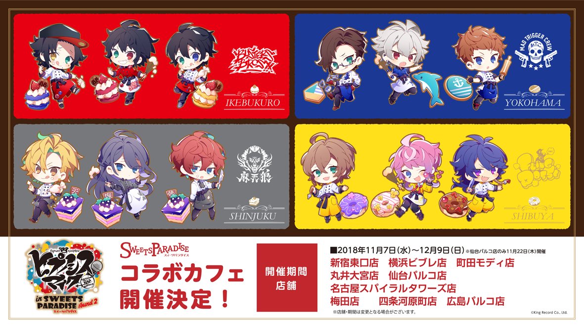 ヒプノシスマイク-Division Rap Battle- in スイーツパラダイス round2「スイーツパラダイス」店舗で提供のメニュー・ノベルティ・コラボグッズの詳細を更新いたしました