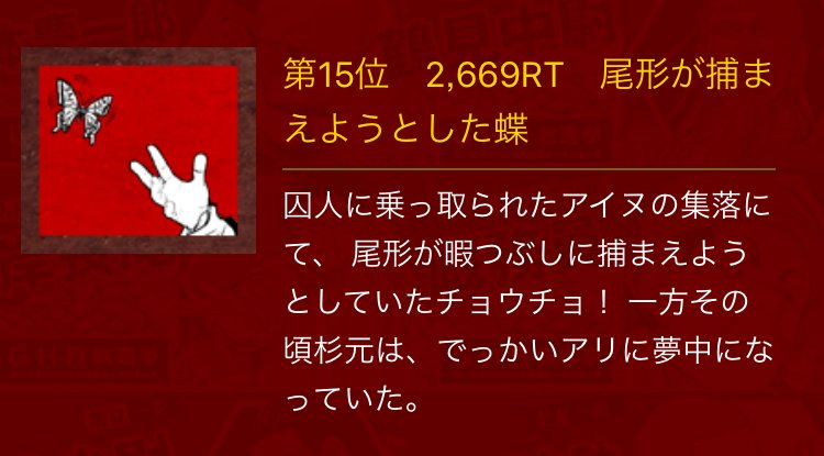 見事「月島軍曹」と「尾形が捕まえようとした蝶」に決定しました!!