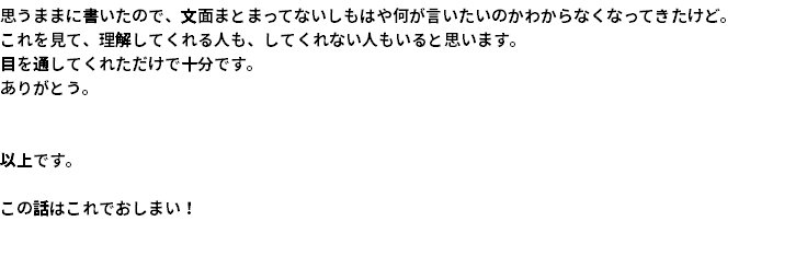 モヤモヤしていたので、勝手なわがままですがこの場を借りて
