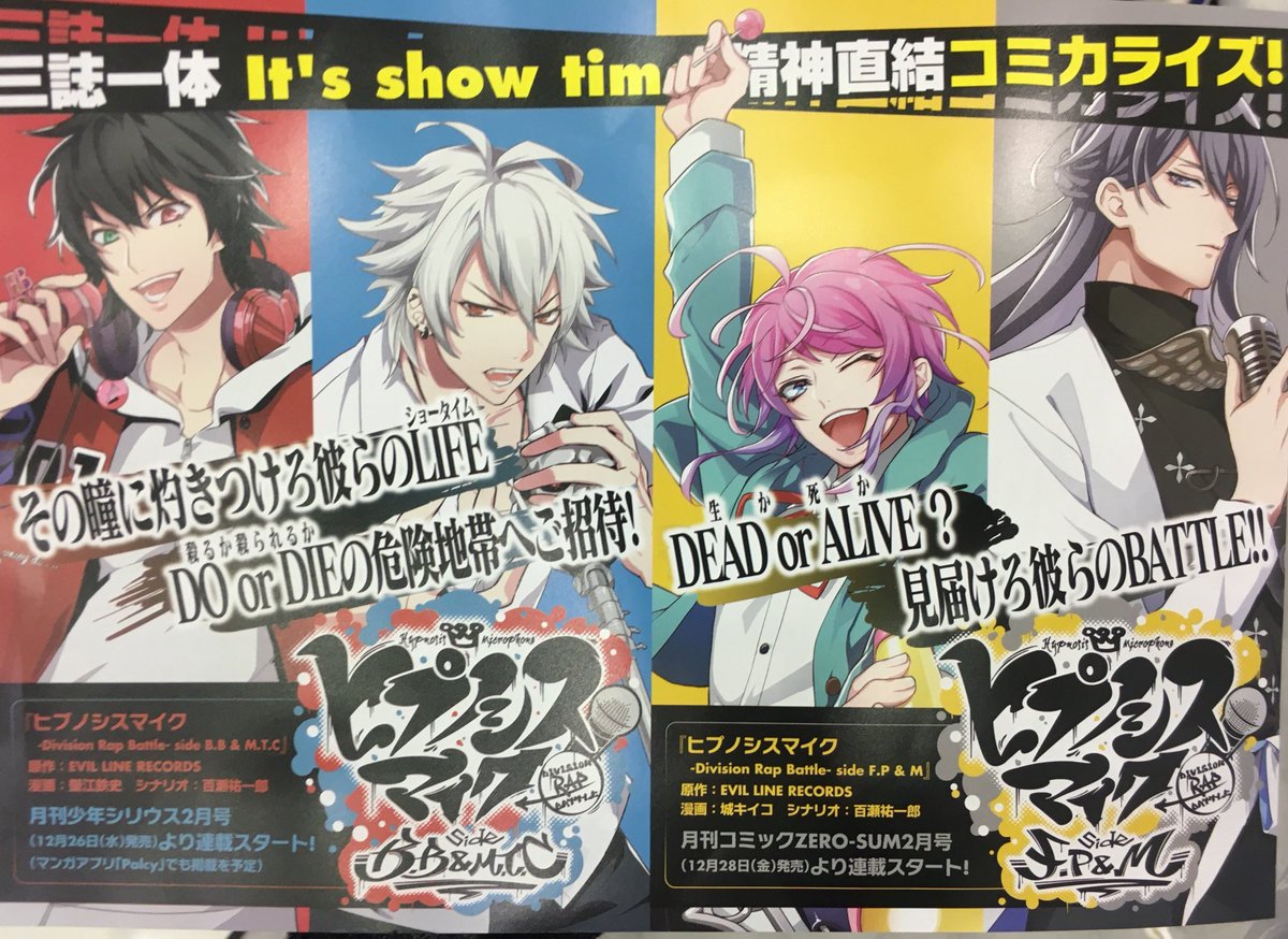 コミカライズの情報出た〜〜とりあえず作画が神…TDD時代のとかなに!?いちろー髪短くて可愛いし、左馬刻様オールバックだし、乱数ちゃんは相変わらずピンクで可愛いし、寂雷さん手袋!テブクロォォォーーー