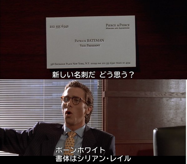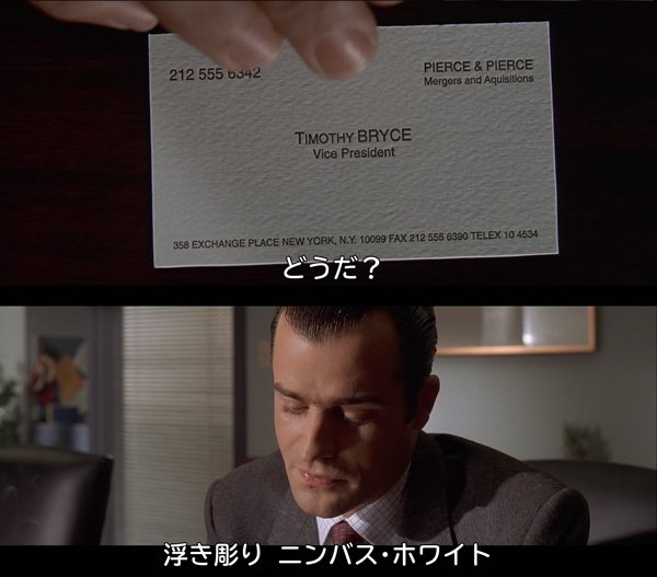 2018.11.13 ツイート maru装丁こだわり同人女みたいな「アメリカンサイコ」の名刺バトルみて 南部てつじ インフィニティフォース見てください@crote_tsu装丁こだわり同人女みたいな「アメリカンサイコ」の名刺バトルみて 01:53 – 2018年11月13日返信リツイートお気に入り ツイートに対するネットの反応ムラング@CaramelMeringueこんなの貼られたら、見たくなっちゃうじゃん。12:49 – 2018年11月13日返信リツイートお気に入りロウシ@へっぽこDTPオペレーター@roushi6263私は割かしこういうオサレ( )なジェントルバトル、嫌いではありませんw しかーし、多くは語りませんが、何回もコロコロ自分のカラーを変えて毎回毎回名刺デザインが変わる企業様もいらっしゃいますからねフハハハハ12:34 – 2018年11月13日返信リツイートお気に入りささかま@fido_fido_fido8活版独特の文字の凹みたまらん12:30 – 2018年11月13日返信リツイートお気に入りとまみしぇみしゃ@yu_tmtなにこれおもしろそう12:26 – 2018年11月13日返信リツイートお気に入りUFO@LaPetiteMortLa読書カードとか映画記録用紙とか建築模型につける概要の紙とかぜんぶこうやってこだわったら絶対楽しい。11:08 – 2018年11月13日返信リツイートお気に入りAshless@火曜日です。@Ashless_EN好き(率直)10:29 – 2018年11月13日返信リツイートお気に入りBUFF@geishawaltzエッチングが最高級なんだっけか。10:03 – 2018年11月13日返信リツイートお気に入り琵琶法師〈弓〉@BiwaHoushi_20yoRT @HIGEnoOIRAN: アメリカンサイコ見ること決意した!w #bungu #フォント #紙10:02 – 2018年11月13日返信リツイートお気に入り 阿部ダイキ@雨男…orz@HIGEnoOIRANアメリカンサイコ見ること決意した!w #bungu #フォント #紙09:42 – 2018年11月13日返信リツイートお気に入りAtori@atorizmこれ観た時、アクション映画ばりの迫力ある名刺と反応の撮り方がめちゃめちゃ面白くて未だ印象に残っている。09:11 – 2018年11月13日返信リツイートお気に入り