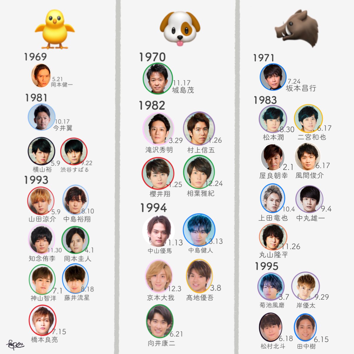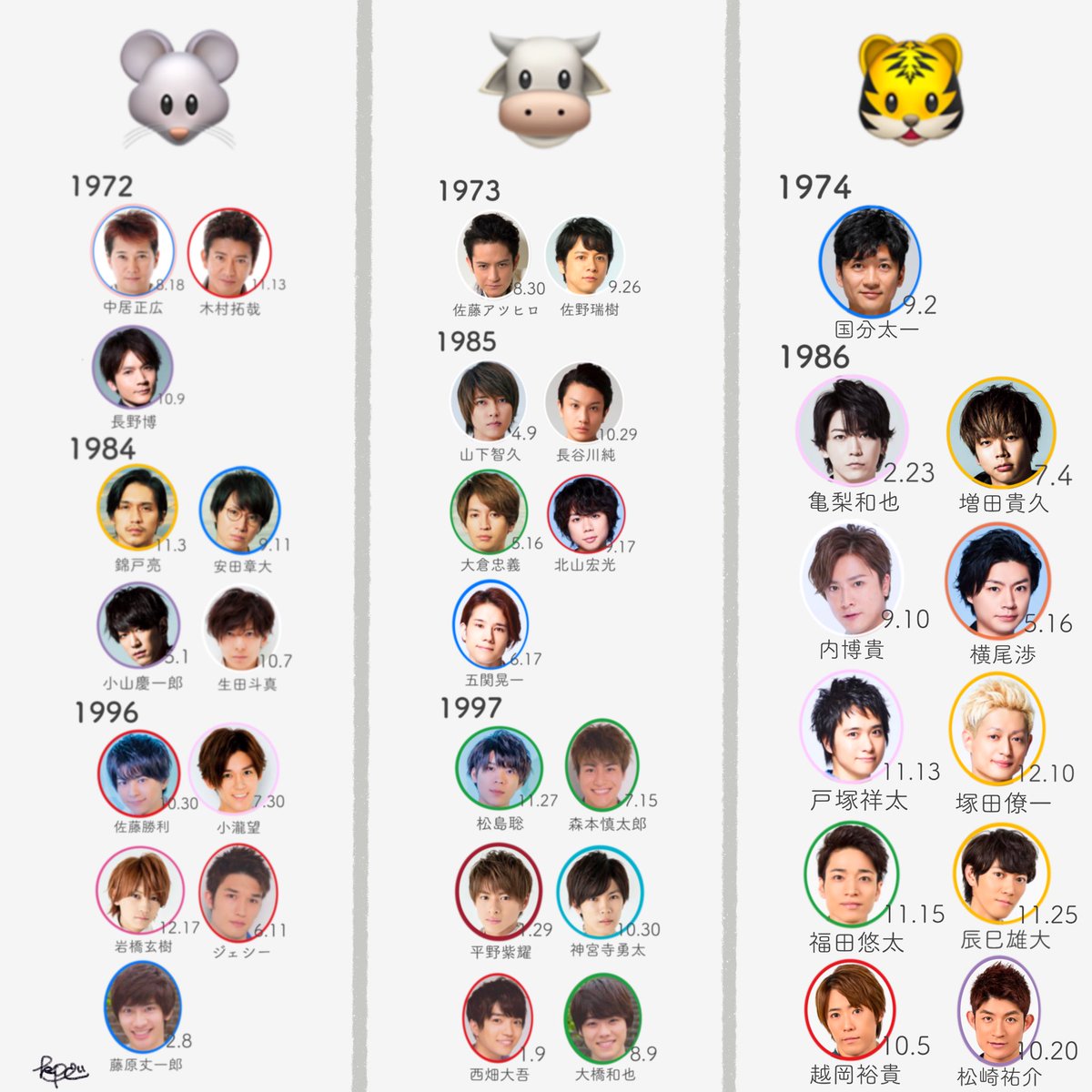 2018.11.13 ツイート maruジャニーズ干支まとめ! けぴ@KgandPrRRRジャニーズ干支まとめ!(敬称略)(ついでにメンカラも・・)Jr内ユニットメンバーも一部抜粋。故に午年さんが増員!個人の趣味でまとめたものなので間違い等、ご容赦くださいm(._.)m 18:25 – 2018年11月13日返信リツイートお気に入り ツイートに対するネットの反応ぺそぎそは仲良い人増やしたみが深@ppppssss7425いや自分の生まれ年の申の少なさwwwwww(はやうまれ)08:19 – 2018年11月14日返信リツイートお気に入りさなちゃん@mmsu_74兎年全員かわいいむり08:08 – 2018年11月14日返信リツイートお気に入り傘を差すあざらし@NEcTkEWpV4mvP2v蛇年少な…。07:08 – 2018年11月14日返信リツイートお気に入りものぐさ姫子@Monogusa_Himekoたいぴちゃん(藤ヶ谷くん)はれんれん(永瀬廉)の1回り上だなんて、信じられないΣ(●д●) いや、信じない01:17 – 2018年11月14日返信リツイートお気に入り夜舞耶歩❤️@kaho_50241年はやく生まれていれば…00:42 – 2018年11月14日返信リツイートお気に入りまこ@makoron0303とりあえず自分の干支と息子の干支を照らし合わせて驚愕((((;゚Д゚))))00:17 – 2018年11月14日返信リツイートお気に入り.*・゚ぴこめろ.゚・*.@ymd15pipiRT @hsj415da: 羊年最高だね。KinKi。剛健。JUMPはベストとセブンの年あるもんね 有森だけ外れるっていうのはあるけど23:56 – 2018年11月13日返信リツイートお気に入りみぉ@hsj415da羊年最高だね。KinKi。剛健。JUMPはベストとセブンの年あるもんね 有森だけ外れるっていうのはあるけど23:48 – 2018年11月13日返信リツイートお気に入り もも@akt____udn待ってくれ、、、そうか、、、私早生れだから涼くんと干支一緒だわしんだ23:27 – 2018年11月13日返信リツイートお気に入り桐山 ゆい@lovewest0831_5いや、巳年少ないな。 あと7年の間に巳年増えないかな。23:14 – 2018年11月13日返信リツイートお気に入りℛ.*✿@kyn6tいっせーたんと一回り違うのしんどすぎる。22:56 – 2018年11月13日返信リツイートお気に入り