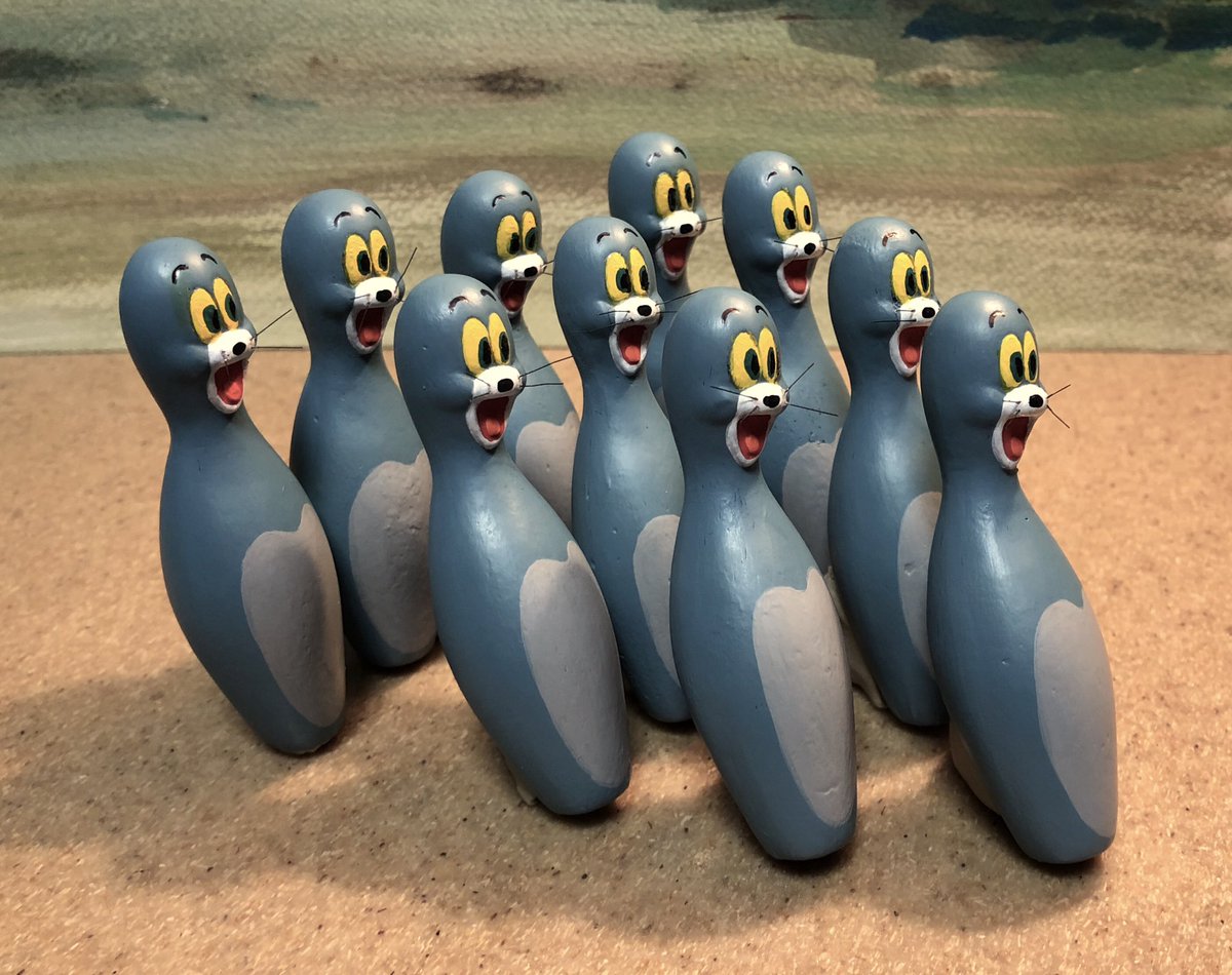 ボーリングの球がぶつかった衝撃でピンになったトムをつくりました