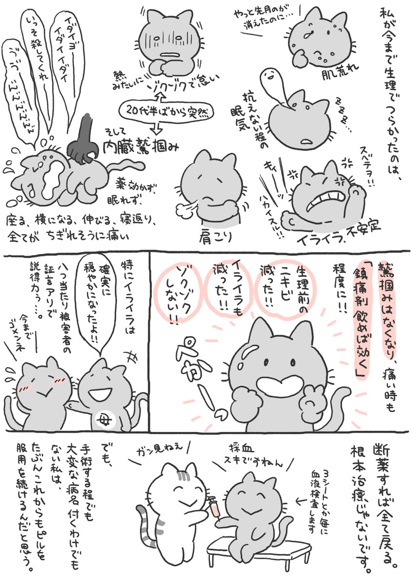 これすごい!よくピルについてマンガにしてくれました;;私も半年ぐらい飲んでるけどおかげで仕事休まなくなったし飲み忘れさえなければ痛みも減るからせーり痛酷い人はぜひ婦人科行ってほしい…;;;;