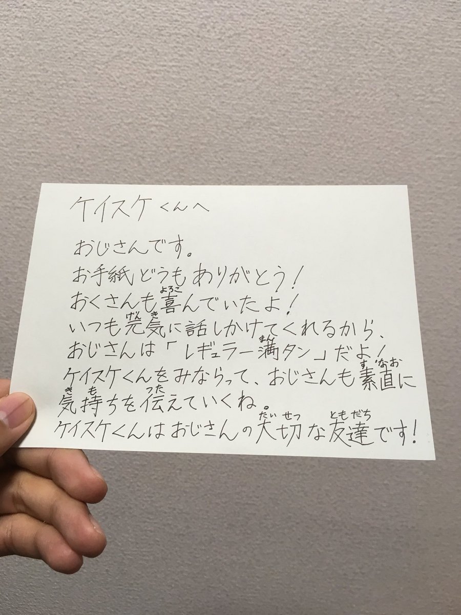 お礼のお手紙を渡した事があって その時の嬉しそうなおじちゃんの優しい笑顔が頭に浮かんだ