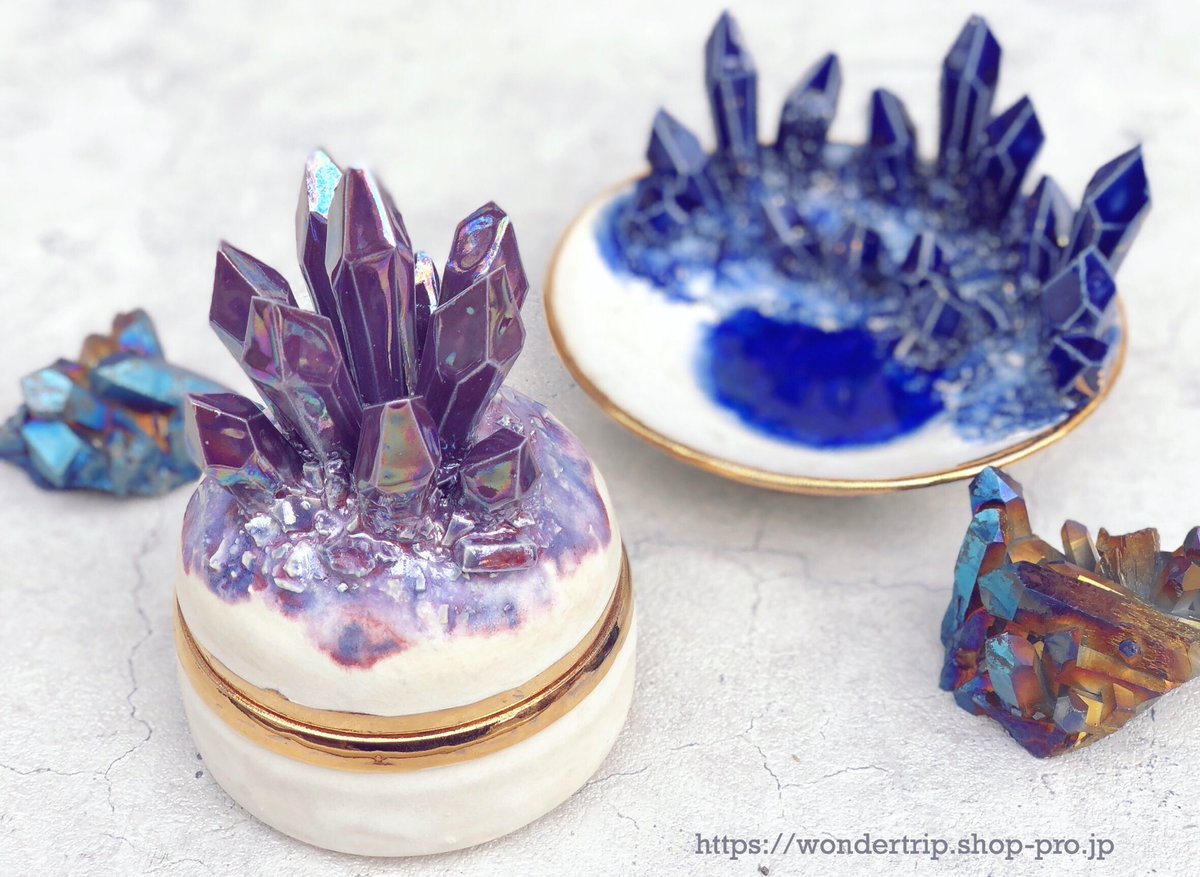 鉱物をモチーフにした、海外の陶磁器職人Lynch氏による作品を販売することになりました!日本初かつ唯一、当店限定の販売です。マグカップ、プレート、小物入れの3種あり、どれも素晴らしい造形・品質・色と輝きです。鉱物好きの方へのプレゼントはもちろん、ご自分用にも是非どうぞ。