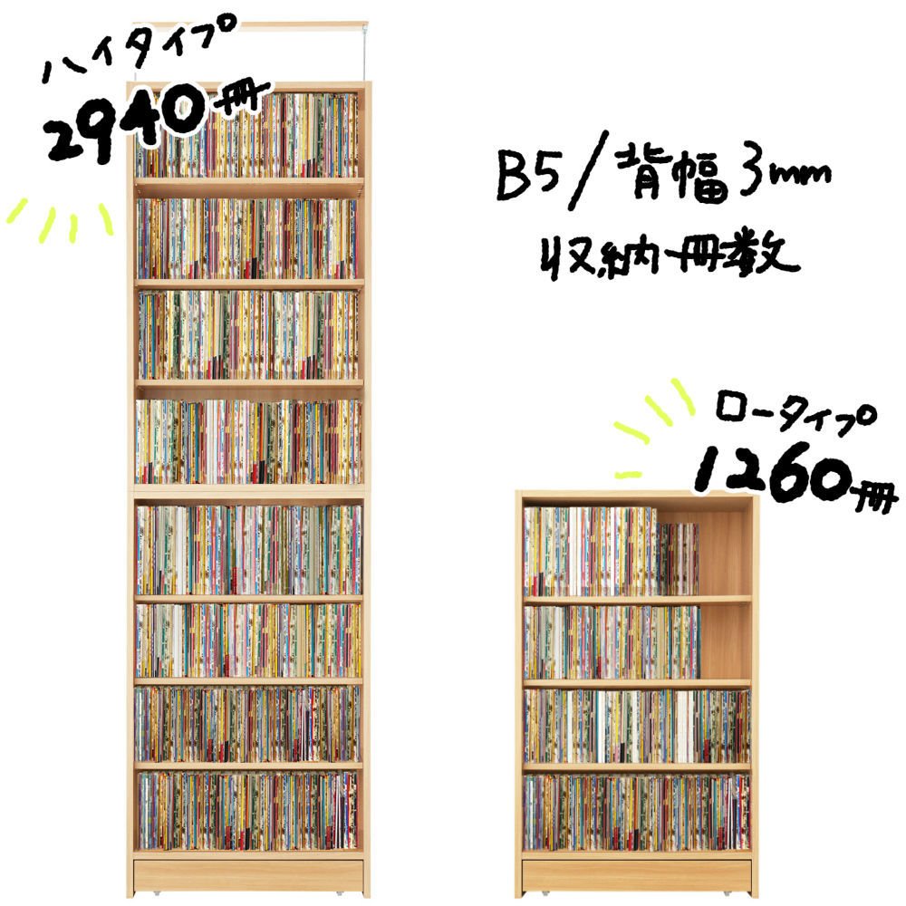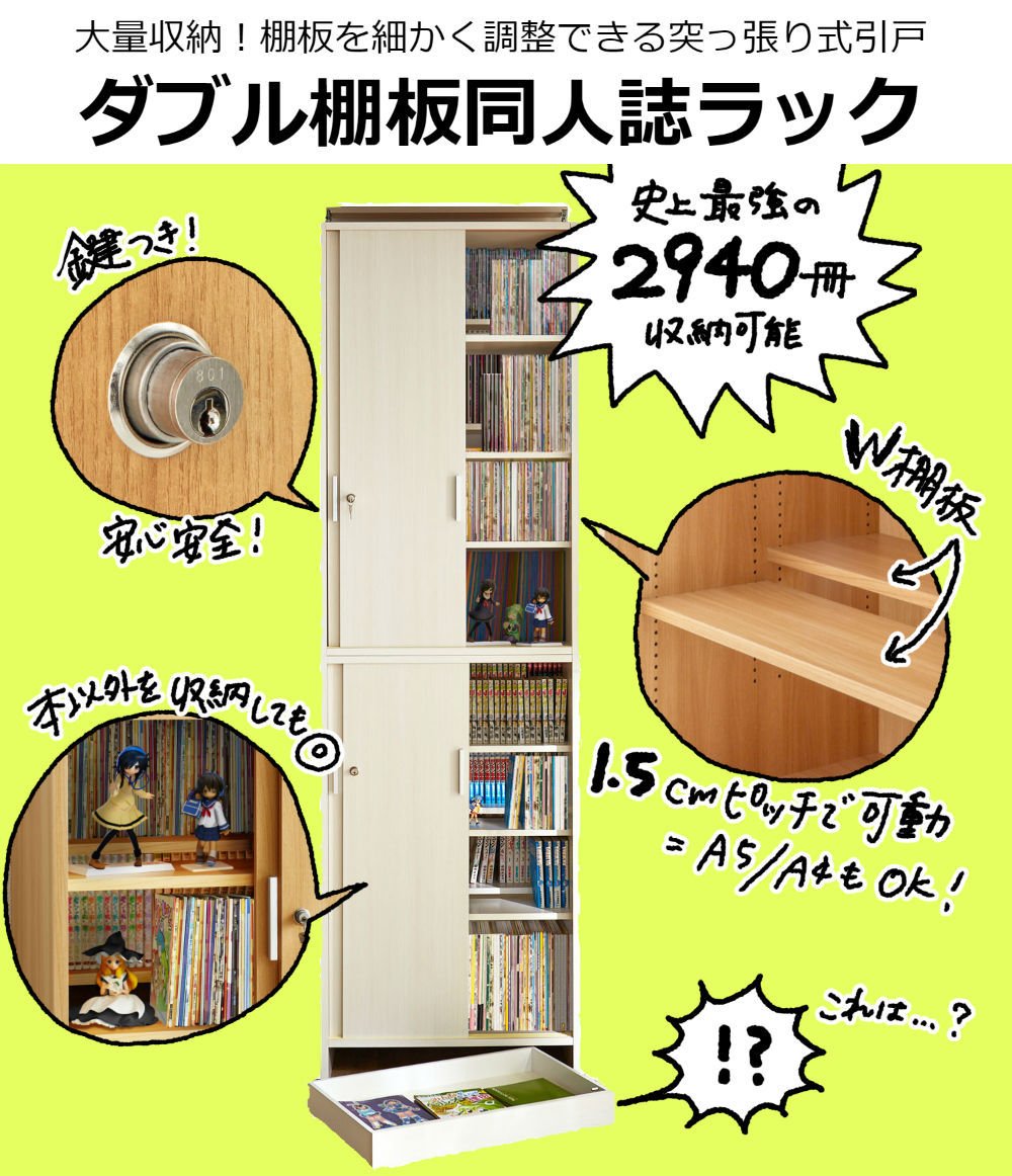 あらゆるサイズの本に対応!棚板調整で同人誌以外の収納にも活躍しそうです!