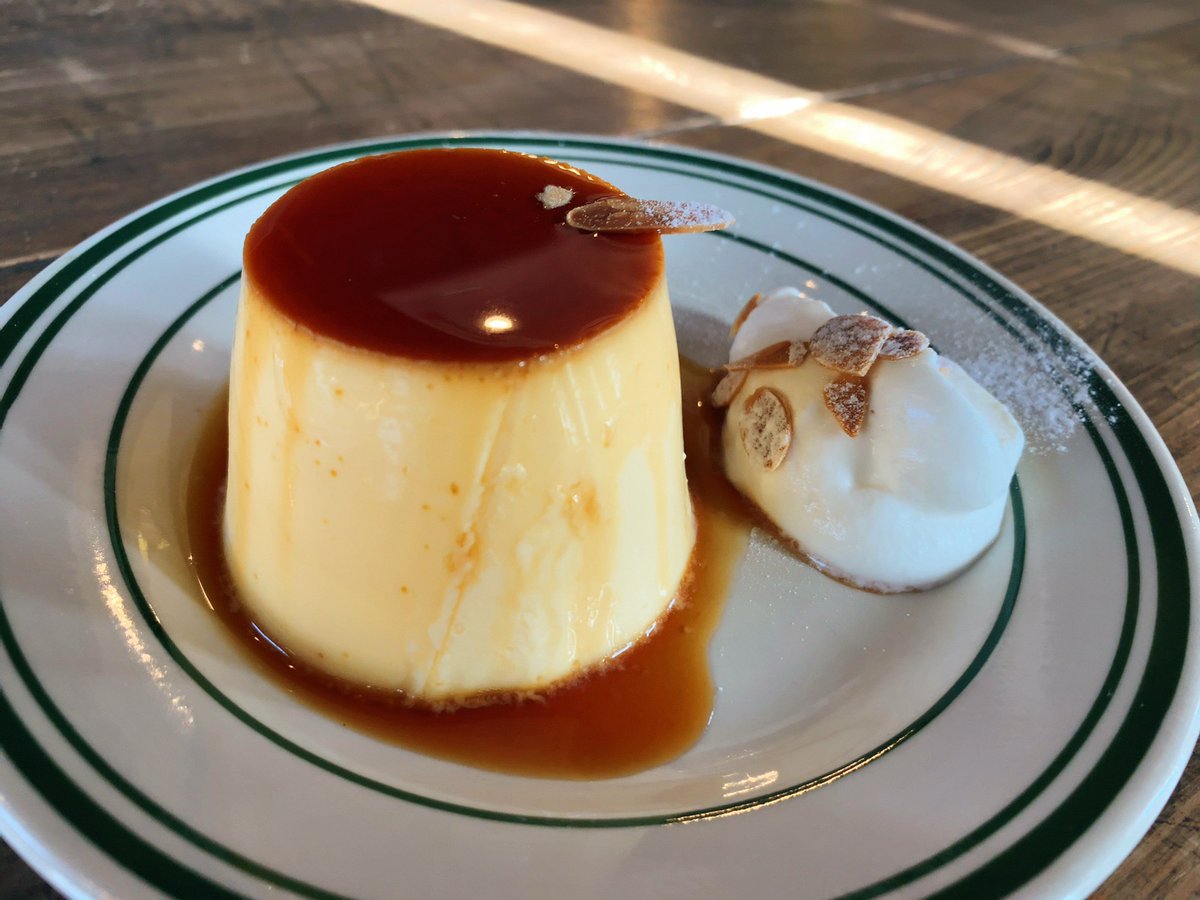 重量感のある「濃厚カスタードプリン」を食べられるお店。