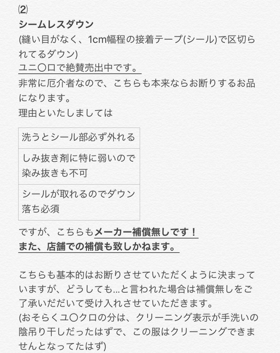 ちょうど、昨日、うにくろさんのシームレスダウンを買ったばかりなので、気を付けます!