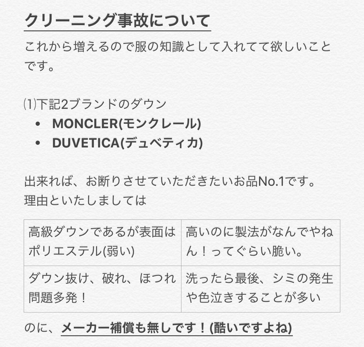 うちの義父母は夫婦2人で営む小さなクリーニング屋さんなんだけど、毎年当然のように仕上げてくれて、旦那さんのモンクレールは10年くらいもってるしフカフカだよ料金は安くないと思うけど、職人技ってすごいと思う。尊敬です‼️