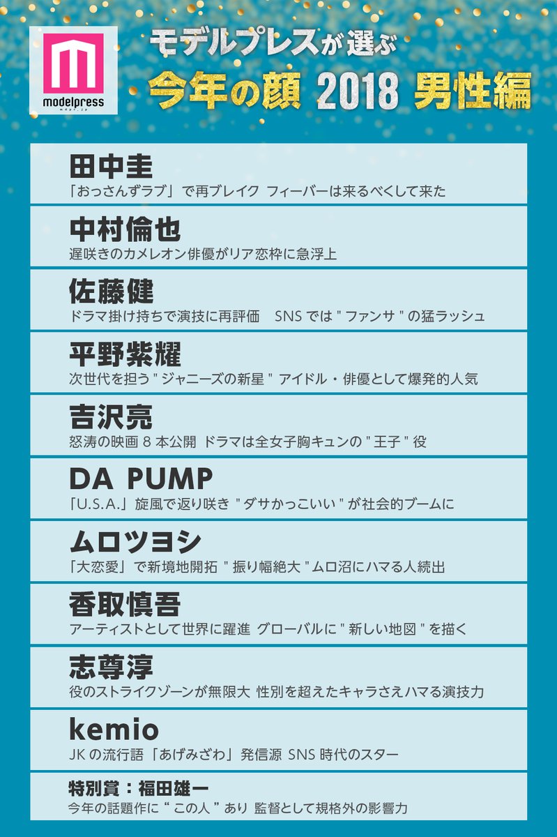 2018.12.21 ツイート maru2018「今年の顔」発表【男性編/モデルプレス独自調査】#田中圭 #中村倫也 #佐藤健 #平野紫耀 #吉沢亮 #香取慎吾 ら10組一覧&選出理由は記事をチェック モデルプレス@modelpress2018「今年の顔」発表【男性編/モデルプレス独自調査】#田中圭 #中村倫也 #佐藤健 #平野紫耀 #吉沢亮 #香取慎吾 ら10組一覧&選出理由は記事をチェック!⇒ https://t.co/FkrJHcJMWv#今年の顔2018 #モデルプレス 10:14 – 2018年12月21日返信リツイートお気に入り ツイートに対するネットの反応中村倫也@senritsutareme身に余る光栄に存じます。10:22 – 2018年12月21日返信リツイートお気に入り【ntv日曜ドラマ】今日から俺は‼️ご視聴ありがとうございました‼️@kyoukaraoreha_nムロツヨシさん中村倫也さんおめでとうございます㊗️そして特別賞に福田雄一さんめでたい✨#今日から俺は‼︎13:39 – 2018年12月21日返信リツイートお気に入りら@raaaaakkkkk香取慎吾…? 特に何もしてなくないか…?14:05 – 2018年12月21日返信リツイートお気に入りミイ@aamu_uninenなるほど納得。 でも私ならここにあの方が入るのだけどー。14:02 – 2018年12月21日返信リツイートお気に入りパンダ家の人々@bamboolove4半青から律とボクテとまーくんの3人も選ばれてるっちゅー\(^o^)/ 何やかんや言って、注目度高かったし絶妙なキャスティングでハマり役ばかりの(いや役者さんがハマってくれた)朝ドラだったな… #今年の顔 #半分青い #佐藤健 #志尊淳 #中村倫也13:57 – 2018年12月21日返信リツイートお気に入りゆっきー@usuke2basuke10ムロさんもいるし 圭くんもいるし慎吾くんもいるし 私得!!❣️笑13:53 – 2018年12月21日返信リツイートお気に入りこねごねこ@conegoneco今年の顔☺️✨嬉しい✨ #DAPUMP #USA #THANX_NeoBestofDAPUMP13:52 – 2018年12月21日返信リツイートお気に入りチョコちっぷ@s_kurumi_panなぜ、ここで慎吾!?13:51 – 2018年12月21日返信リツイートお気に入り みずき@mizuki3jsb___けみお 入ってんじゃんwww13:48 – 2018年12月21日返信リツイートお気に入り