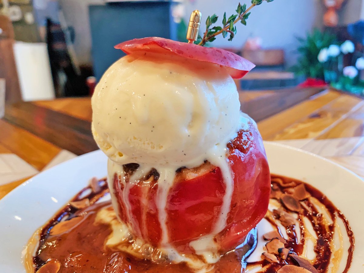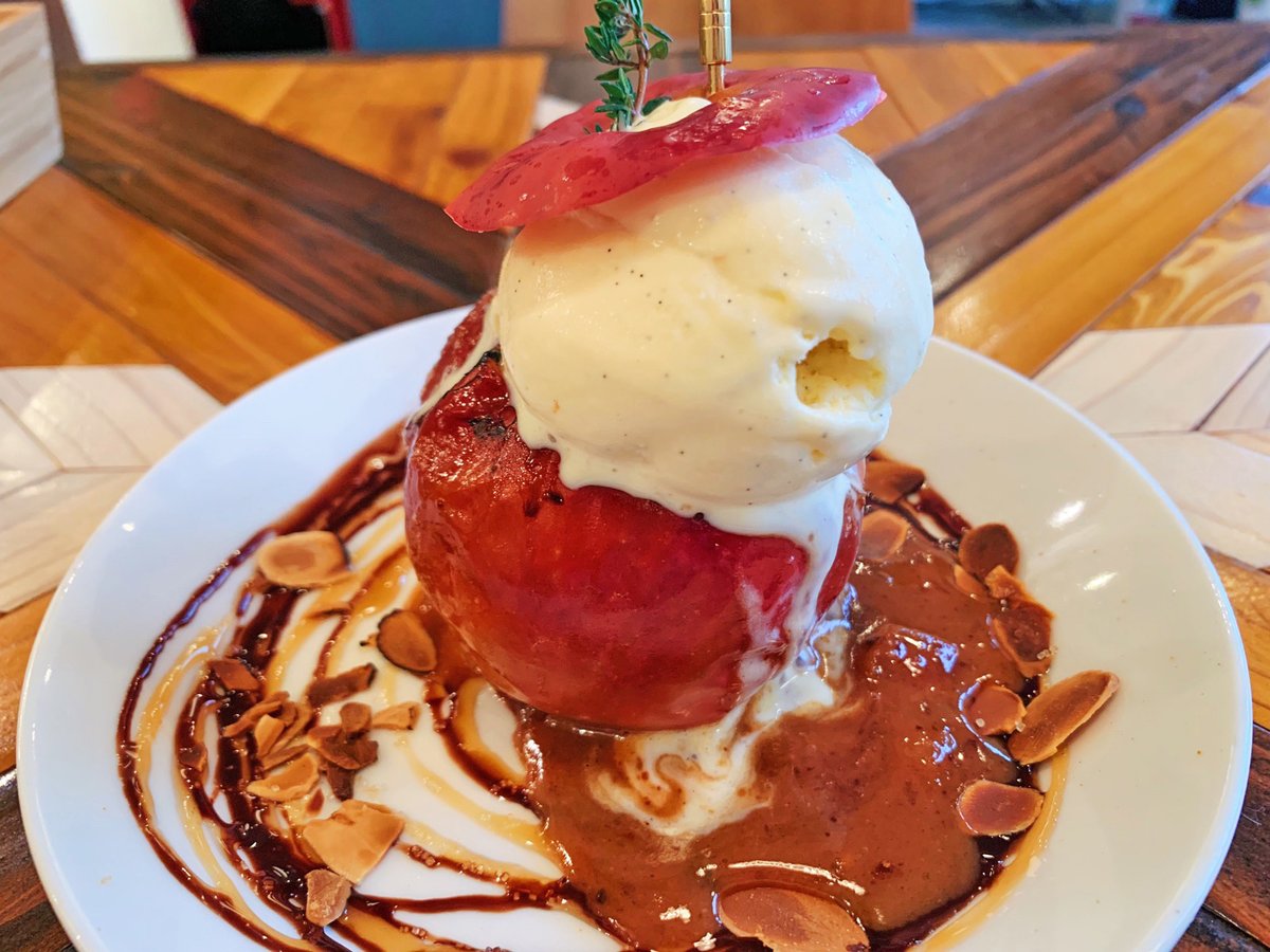 リンゴの銘柄「紅玉」を使用したスイーツで、ソースとリンゴの甘味がマッチした逸品!
