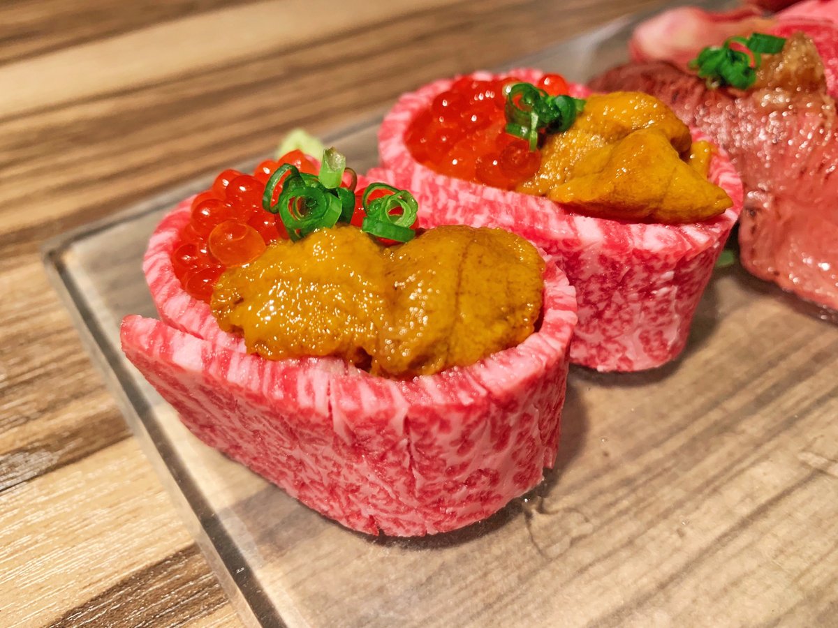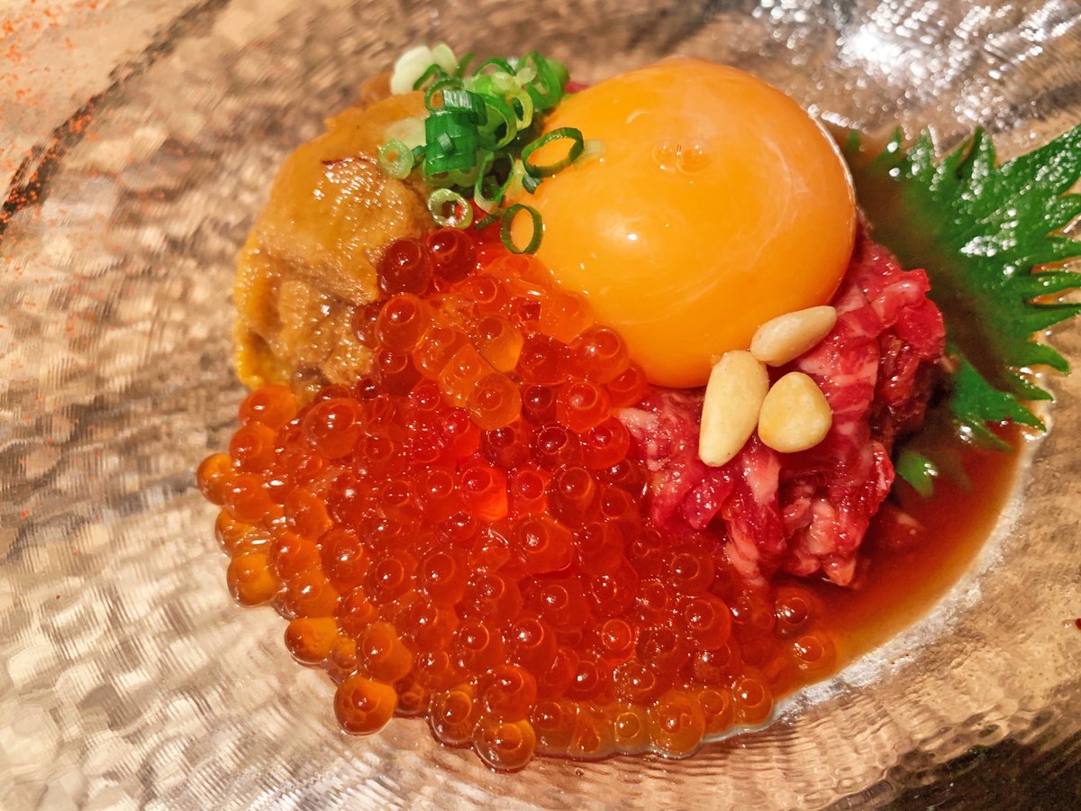 ウニ&イクラを使ったユッケや軍艦巻き、赤身やトロの肉寿司など贅沢な時間を過ごせます