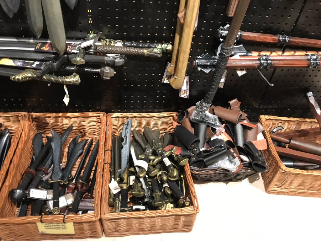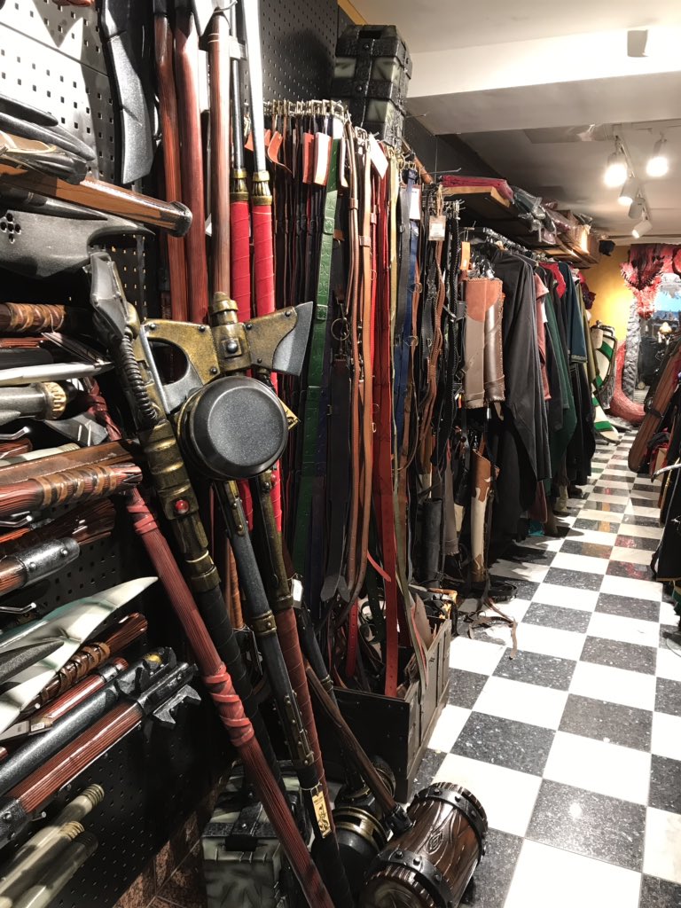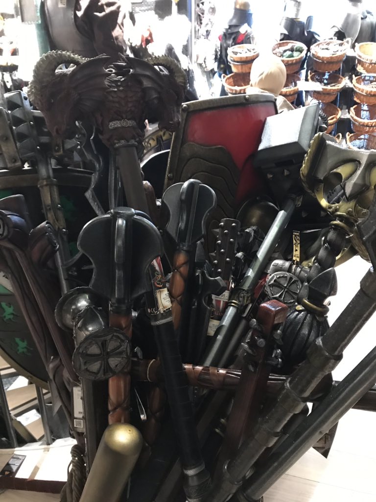 確かアメコミとマンガ両方を取り揃えたくっそデカいコミック書店なんですよ。で、一角にコスプレ?ロールプレイ?用の武器や甲冑が置いてある、といった具合。