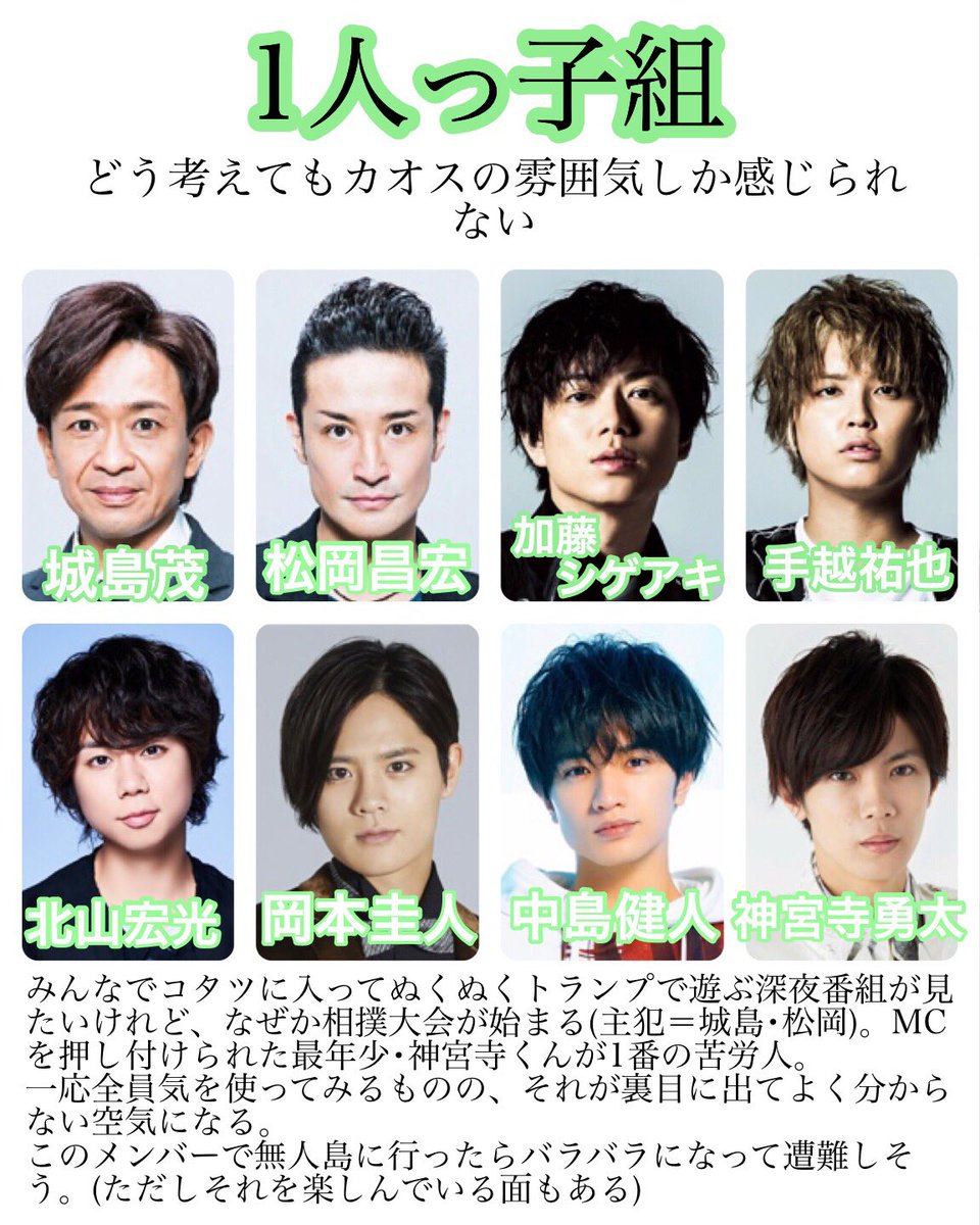血液型占いは対して信じてないけど、兄弟構成萌えをこじらせているので、ジャニーズを兄弟構成で分けて運動会とか深夜番組とかやってほしいな〜〜〜!!!!!!って話。