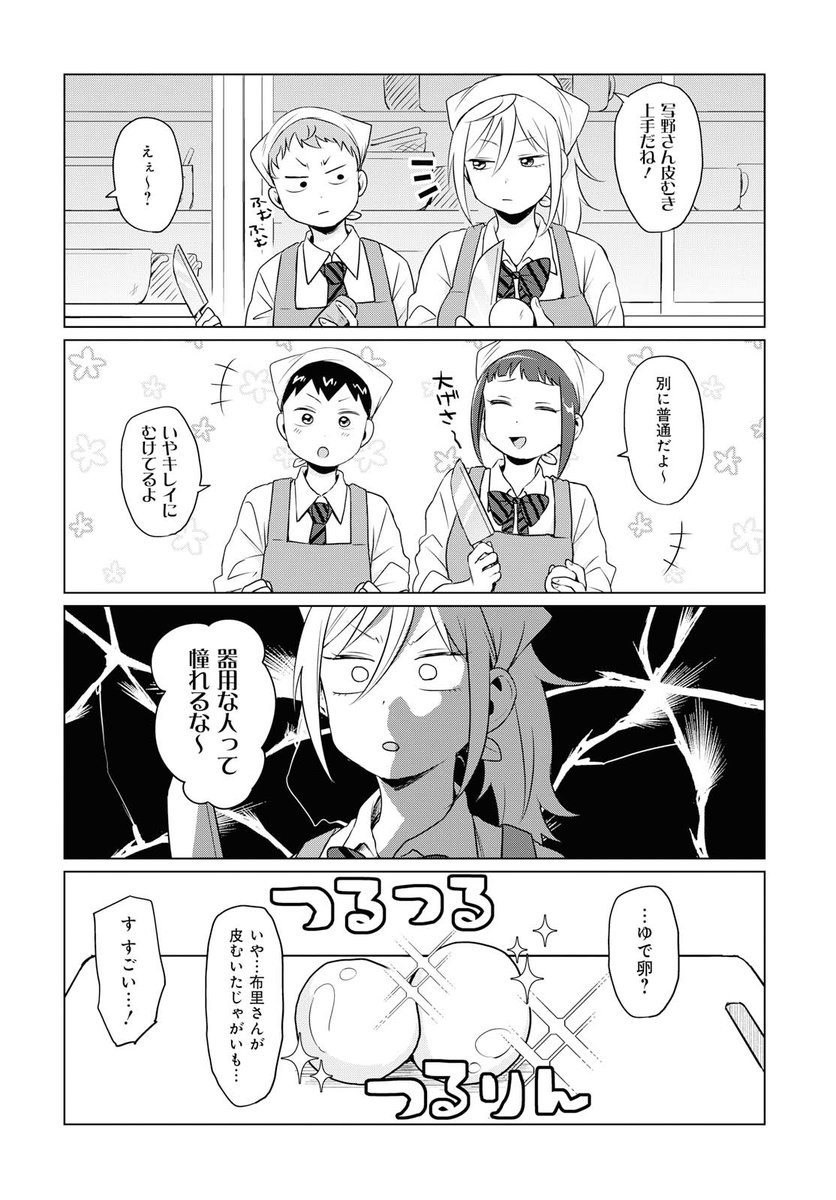 髪の毛出すぎだろ。三角巾かぶってる意味(クソ以下のツッコミ)